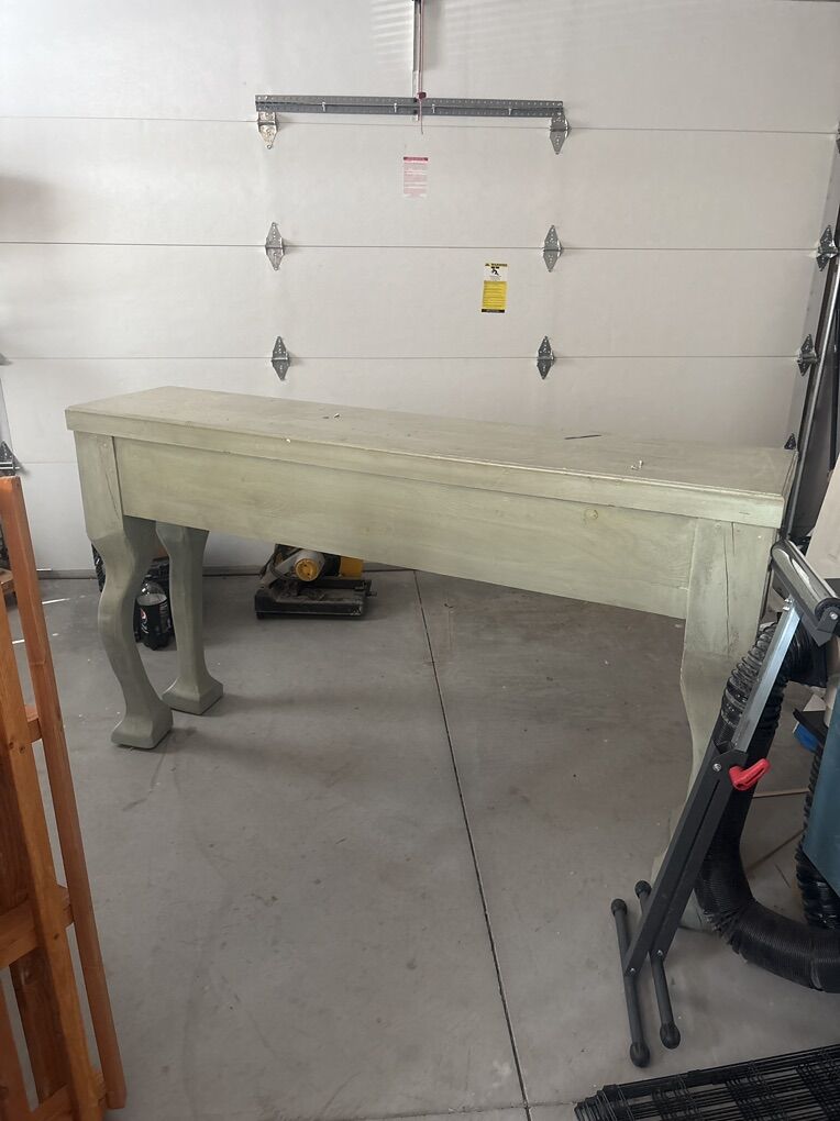 Decorative entry or couch back table. Very nice, rustic farmhouse style. 16” deep, 72” inch long and 42” inch tall. With two operational 20” wide drawers. Structurally sound and ready for use.