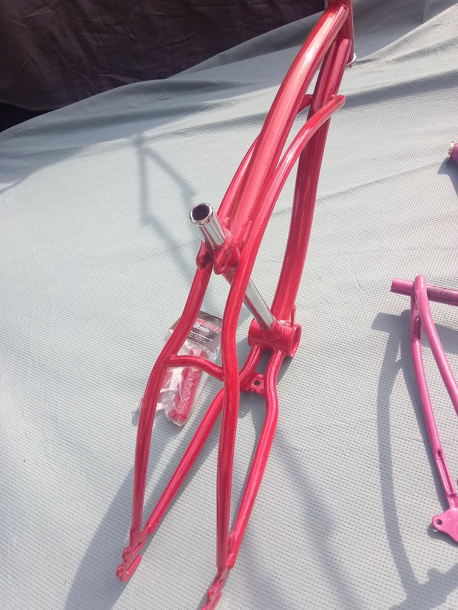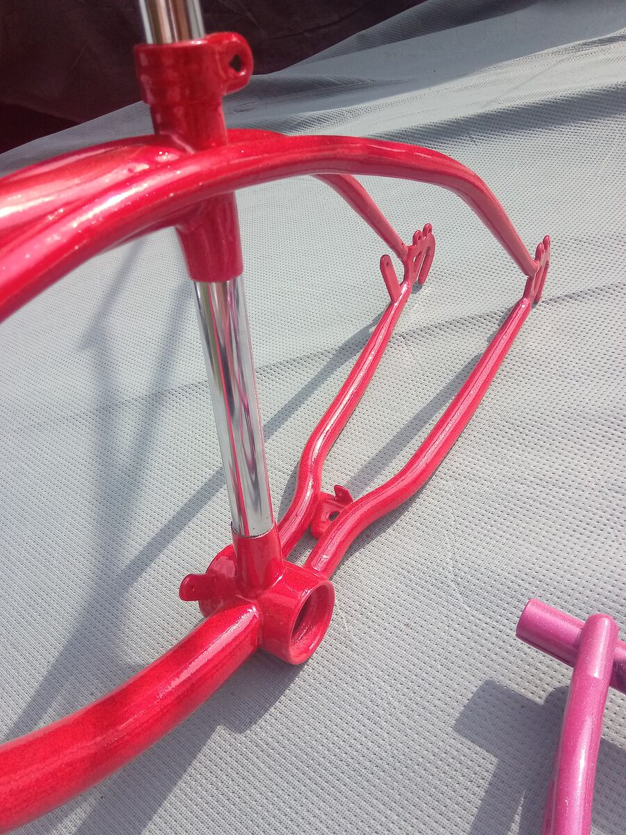 PayPalCustom painted lowrider bike bicycle frame and handle grips. Custom metal flake and pearl graphics plus chrome plated center post.