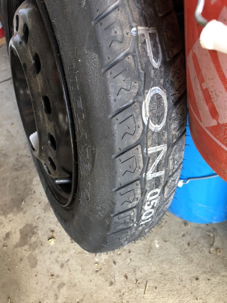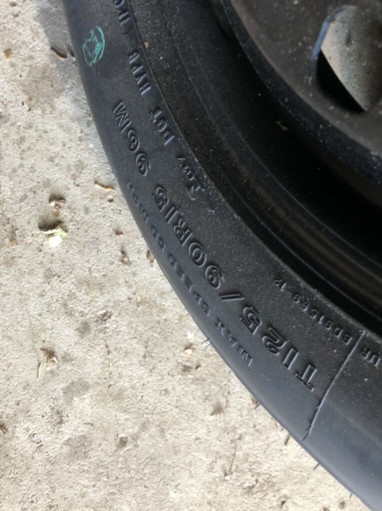 Not a lot to explain here: 4 bolt patter, 15 R Probably 20 years old. Hopefully it will take you from point A to B in an emergency.