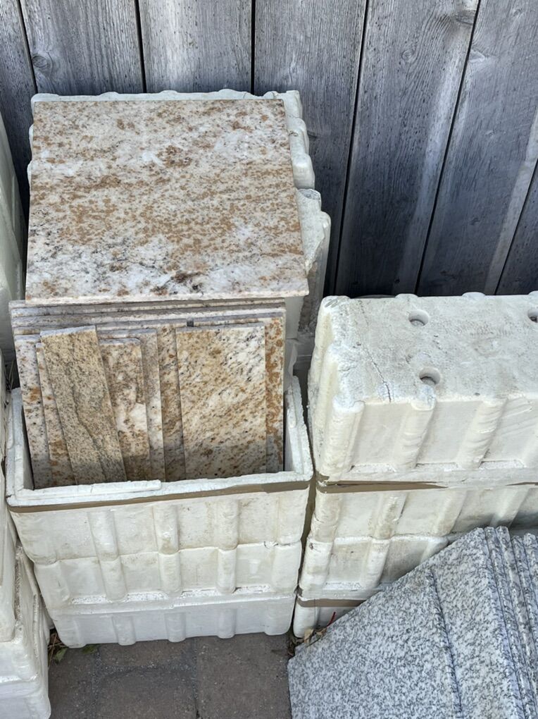 Very beautiful gold tile. Marble or granite. Not sure which. 12 by 12 inches. 70 tiles. Wish I had a place for it, but just need to sell it.