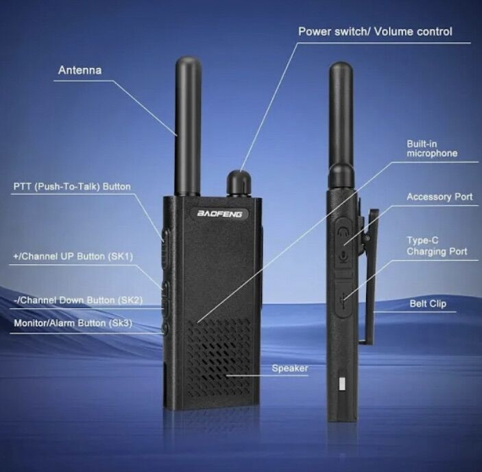 VenmoBrand NEW!!! Flat (like cell phones)...... Power switch, volume control, antenna, push to talk button, channel up/down buttons, monitor alarm button, built in microphone, accessory port, charging port, belt clip. Great range...... Asking $50 Contact John or Carolyn at (385) 221-0414 Asking