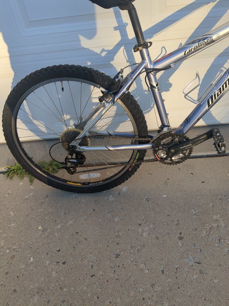 PayPal2004 diamondback carolina is tuned up and ready for you to ride. It has new grips, new tubes, new seat. It's a size women's medium meaning any female rides who are 5'6-5'9 can ride this bike. $300