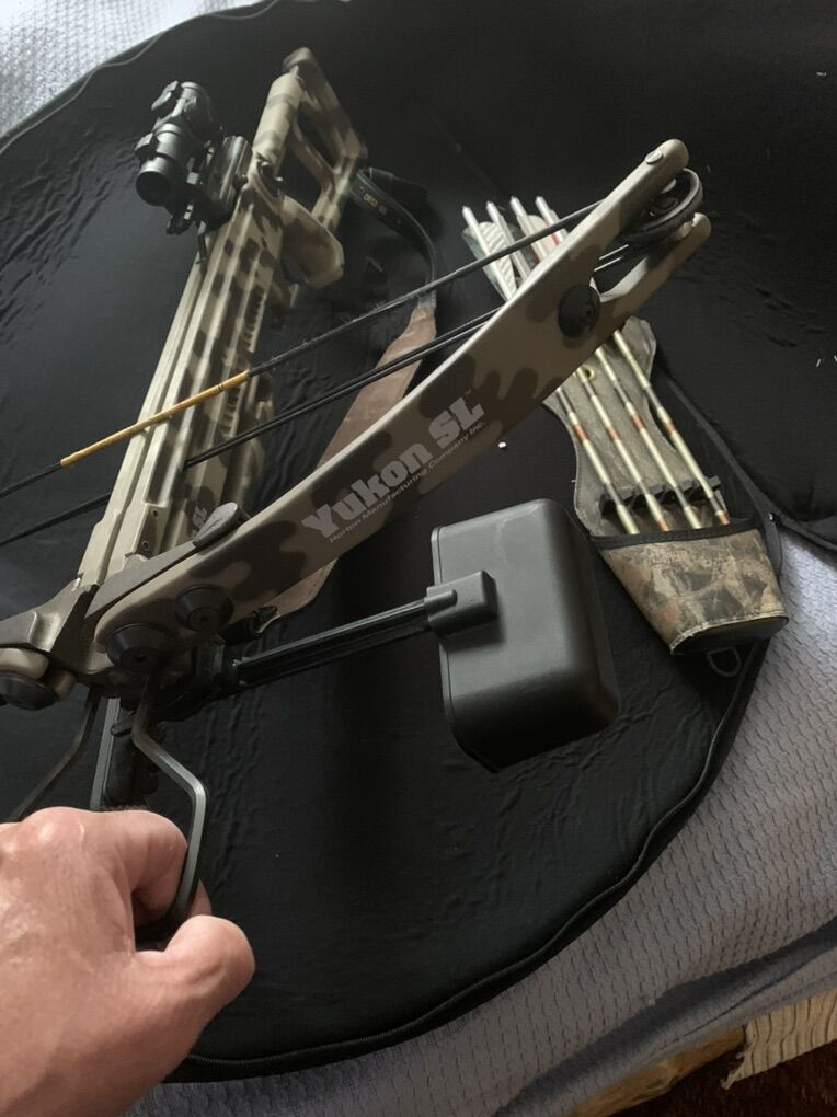 ZelleThis is a hardly used cross bow, i dont know what poundage it is, but its hard for me to pull it back. Has a scope, the bolts, and carrying case; camoflage. I also have a straw filled target with the stand that i will throw in with it.