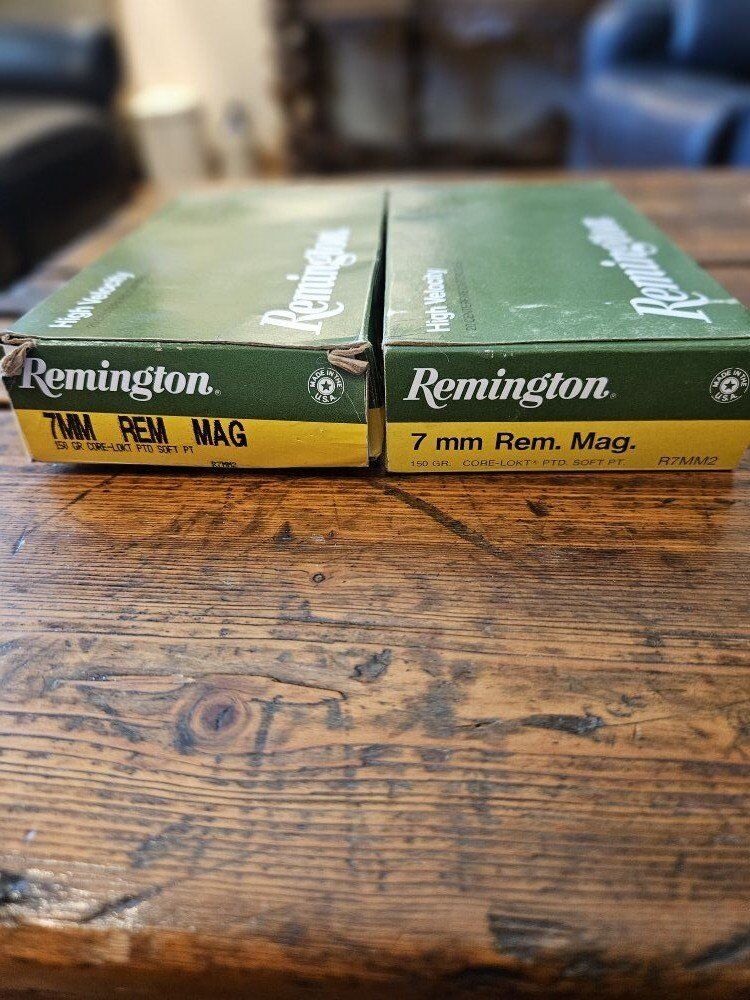 Two boxes Remington7MM REM MAG 150 Grain Core-Lokt soft Point Ammunition. One box has 1 spent cartridge so there is a total of 39 live rounds.