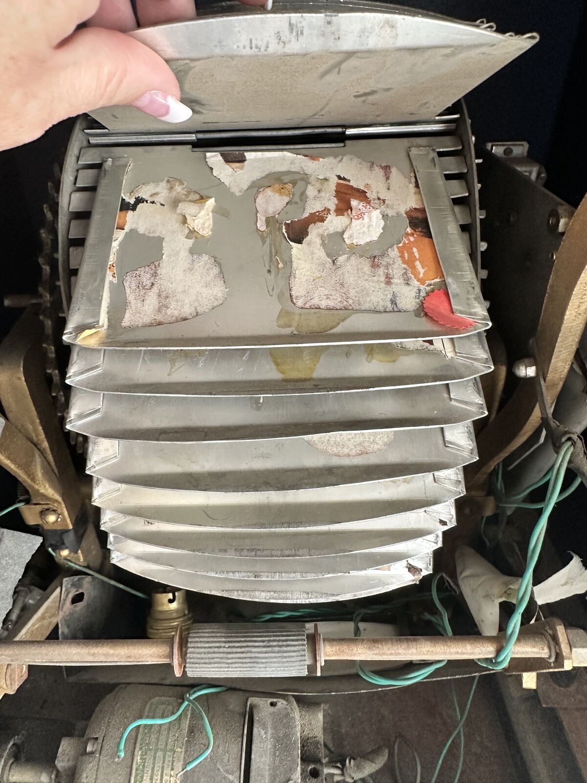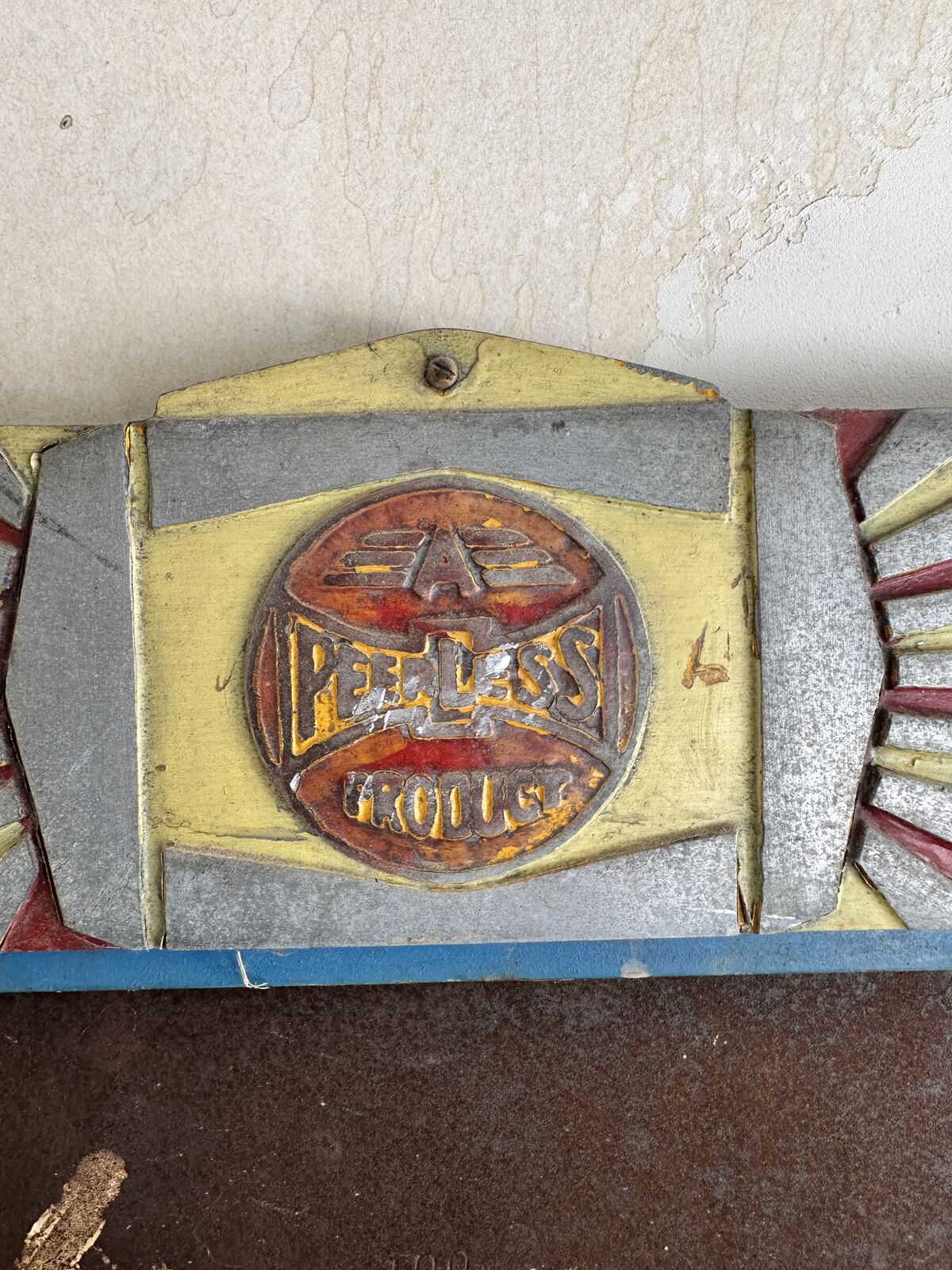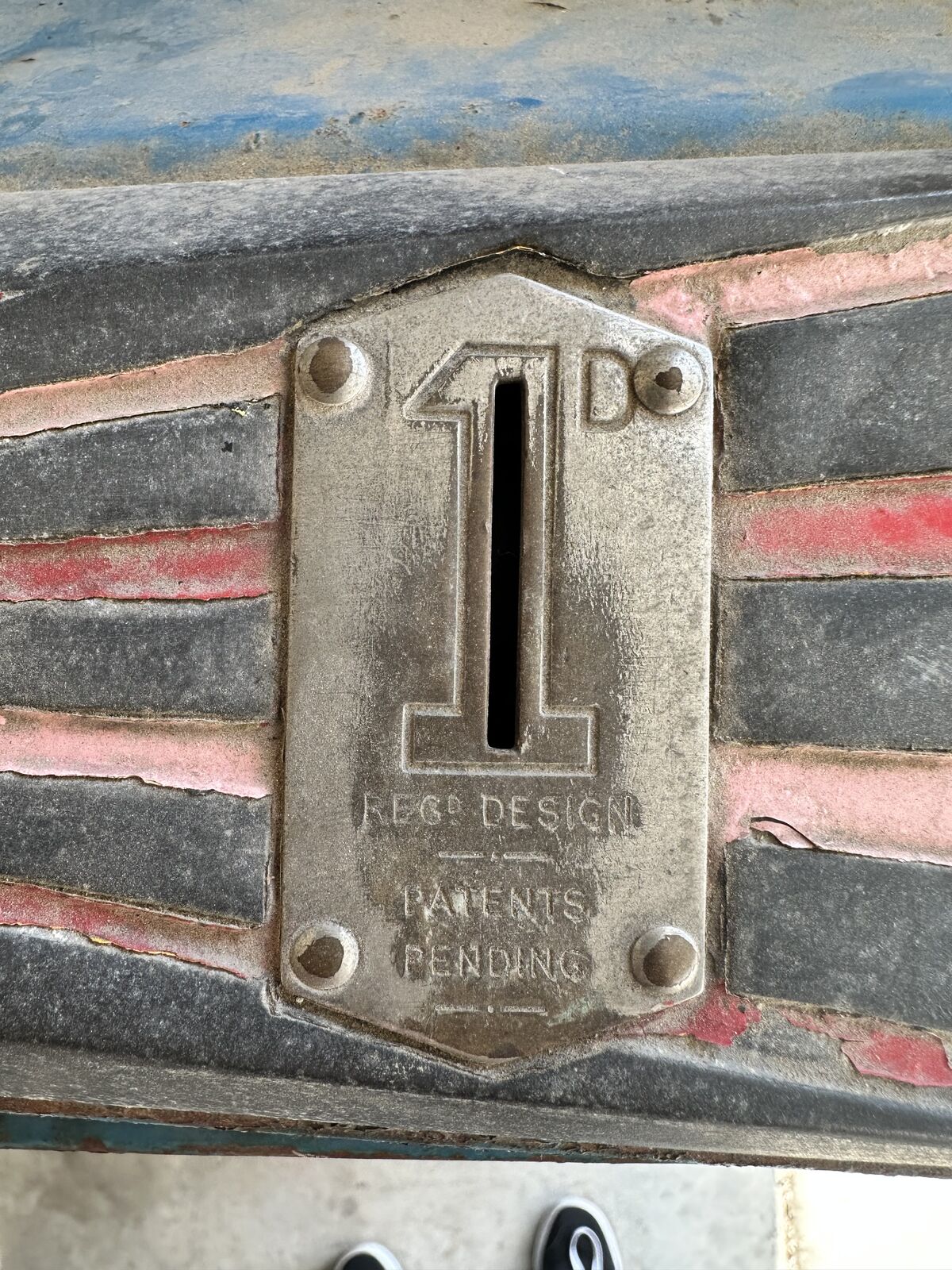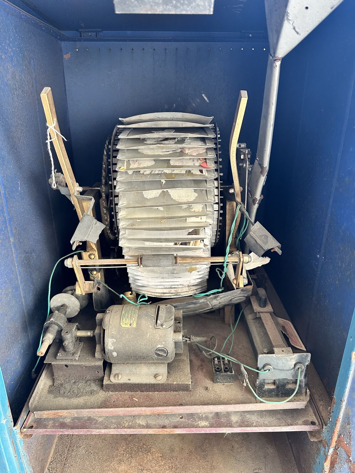 Peerless Pictures stereoscopic viewer, c.1950's original Penny Arcade 'What the Butler Saw' machine, Klaxon motor driven mechanism, takes 1d coins, will fit 48 images of scantily clad ladies, contained in a blue painted steel case with decorative back plate, in need of restoration