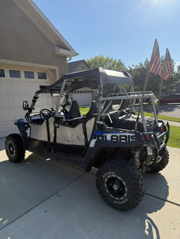 This 2010 Polaris Rzr4 Robby Gordon Edition is so much fun! My family has enjoyed this. It is fully street legal but the suspension makes you barely feel the dirt roads when off road. It’s the 4 seater but we will include the 5th seat which is a jump seat perfect for a smaller child. 4 point harness seatbelts on every seat. Bluetooth radio with a HUGE subwoofer, people can hear you coming for miles if that’s what you want. Aftermarket LED whip lights, LED light bar, and custom rack in the back. This does have the factory from winch. I have a set of street legal tires that comes with this. We have the engine replaced in December 2024 by Impulse Powersports in Lehi, so it’s got a whole new life. Only 250 miles on the new engine. $9,000 and I have a trailer that I’ll sell for an additional $1000. Text is best. 801-347-9008. Located in Lehi. Title in hand.