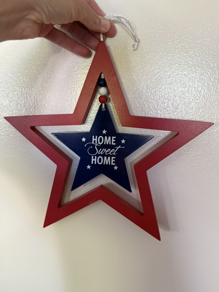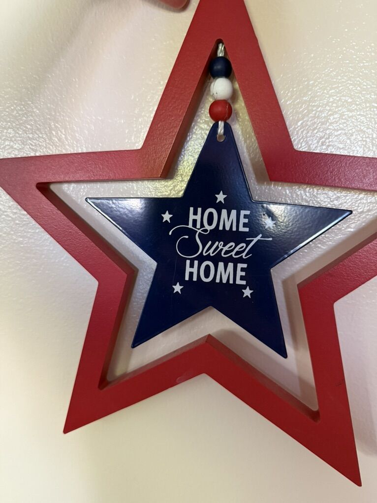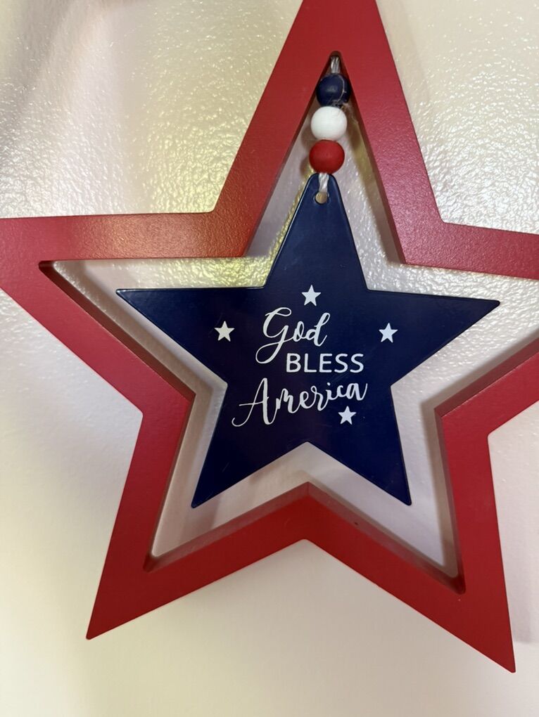 Star god bless America home sweet home large star decoration with string 14”