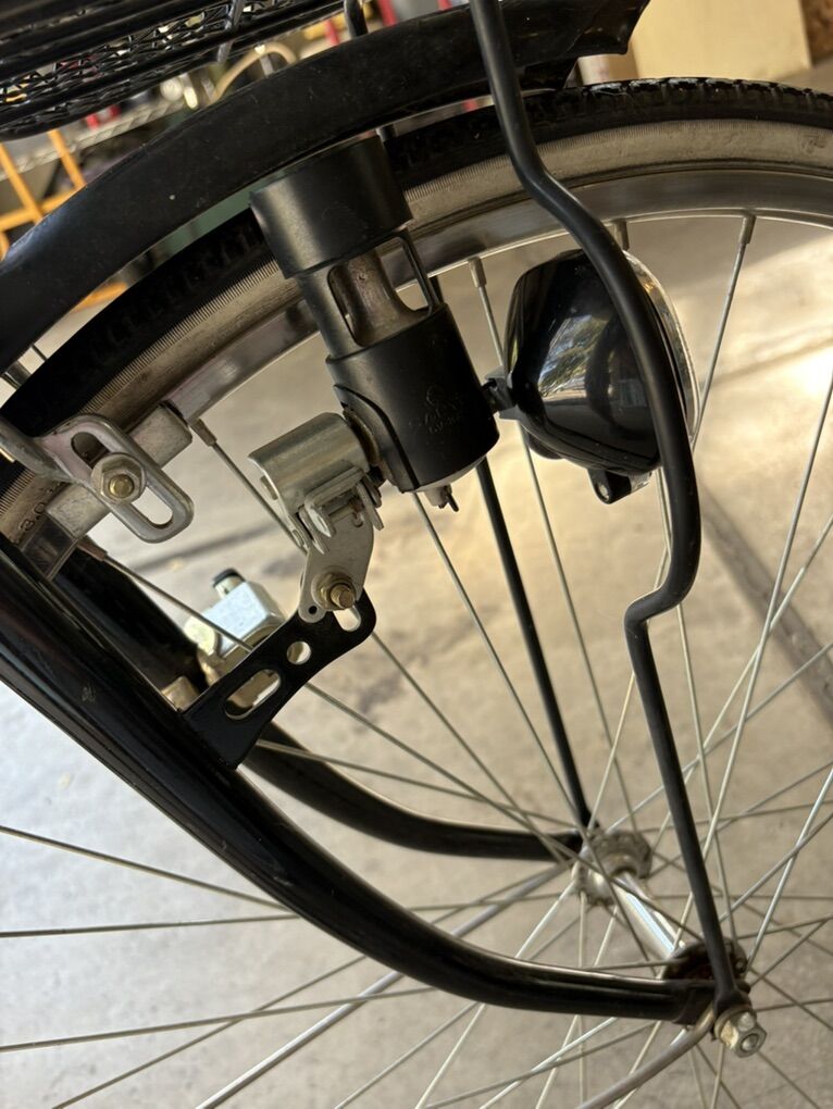 Single speed and rear back peddle brake. Super cool retro front friction generator headlight that still works. Everything else works and looks great. An amazing vintage bike ready for the road or could be a fantastic display for your store / commercial space.
