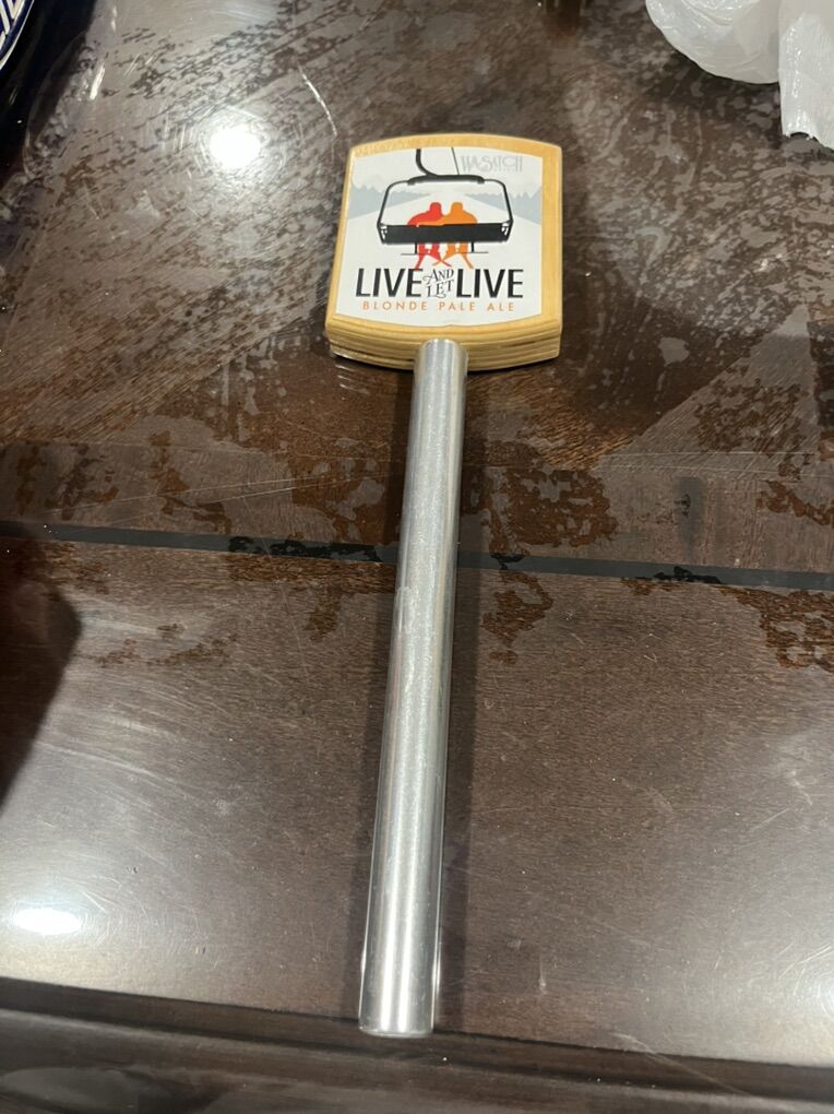 VenmoVintage/rare wasatch beers live and let live blonde pale ale beer tap. It has the ski kick photo on it. From a closed night club in Utah. Wasatch brewery is know. For Utah’s first microbrewery in park city.