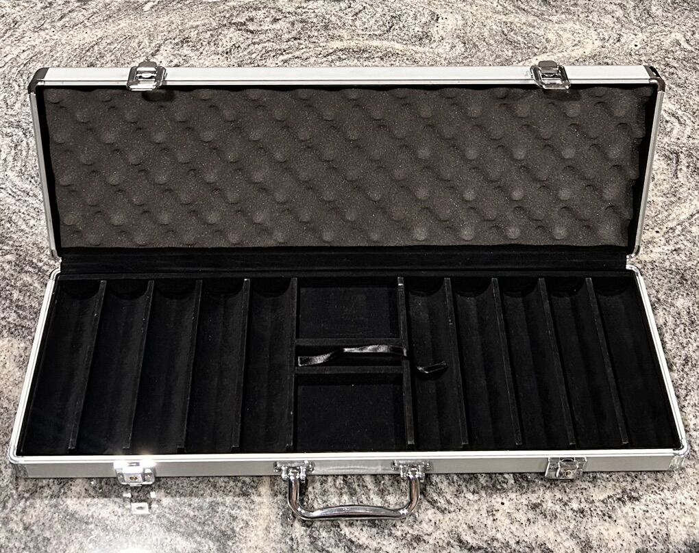Empty silver metal poker case holds 500 chips. Text preferred or leave a voicemail and I’ll get back to you.