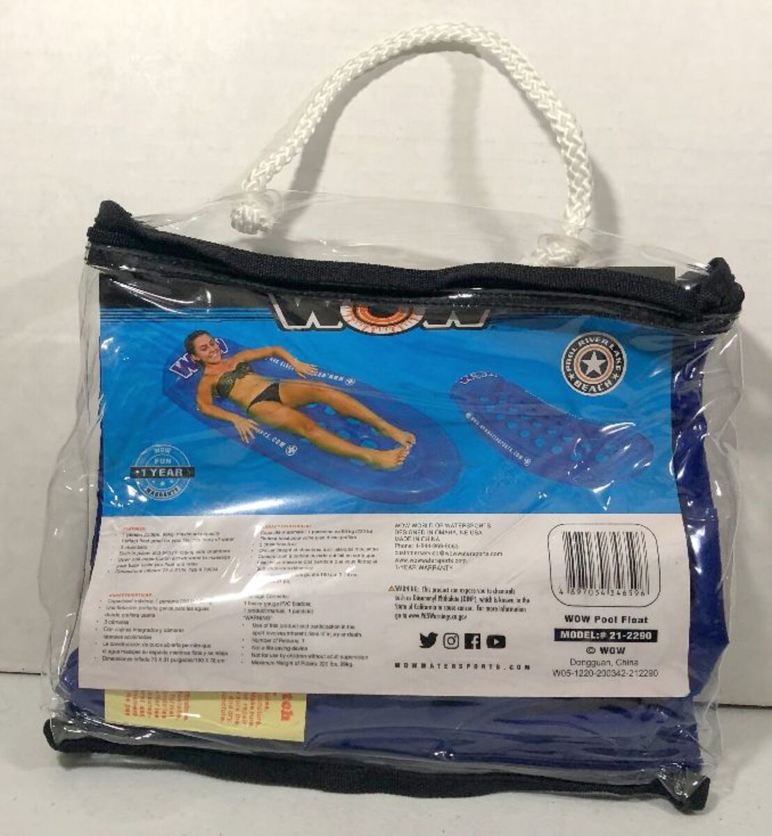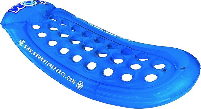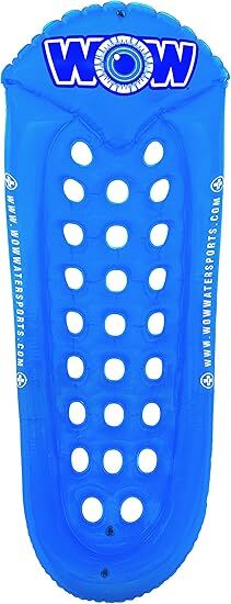 The WOW pool float comes with a built-in pillow and body hugging side chamber. The open coil construction allows the water to massage your back while you relax in your favorite body of water. This float is lightweight and durable. When deflated it is small enough to fit in your purse or handbag, but when inflated it is large enough to be used by anyone up to 250lbs and 75″ tall.