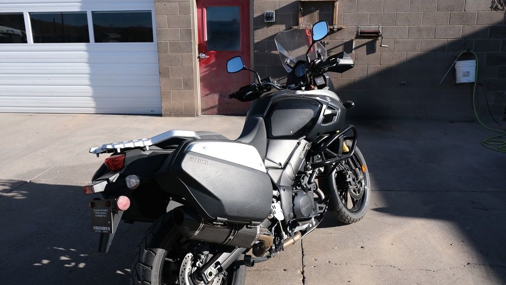 STOCK NUMBER: 1371 MILEAGE: 18,120 2014 Suzuki V-Strom 1000 ABS AdventureWhen size, weight, power, and maneuverability come into balance, you find yourself in a zone where time just disappears. Stay the course because there is no road the all-new V-Strom 1000 ABS Adventure was not made to conquer. This motorcycle makes the journey of life seamless. Conquer city traffic as easily you scale mountains. Roar down new highways. Explore your taste for discovery on roads long untraveled. Starting now, the planet is your neighborhood.The all-new 2014 V-Strom 1000 ABS Adventure was redesigned from the ground up. It has many improvements over the previous V-Strom 1000 and the list is enormous. One of the newest changes or additions is Suzuki's first Traction Control System on a motorcycle which the V-Strom proudly carries. Other features that were improved or redesigned are the engine, fuel injectors, magento, idle speed control, radiator, clutch, transmission, exhaust, suspension, and much more! See the features list for more details on this one of a kind adventure bike!The Adventure Model comes standard with the following accessories: Skid Plate, Hand Guards, Touring Windscreen, Side Cases and Mounting Brackets, and Accessories Bars.The ABS is a supplemental device for brake operation, not a device for shortening stopping distance. Always remember to reduce speed sufficiently before approaching curves.Features May Include:The rider can select three modes (1, 2, and off). Modes 1 and 2 differ in terms of sensitivity. Mode 1 has lower sensitivity; it allows a certain degree of rear wheel spin. Mode 2 has higher sensitivity; the system effects traction control sooner.A redesigned 1037cc, 90-degree V-twin engine is designed to get you where you want to go. Whether it is around town, on the open highway, or down the road less traveled.Tokico 4-piston monoblock front brake calipers with 310mm floating-mount dual discs are now equipped with the new V-Strom for a stronger braking performance.The instruments include an analogue tachometer and a brightness-adjustable LCD speedometer. LCD readouts include an odometer, dual trip meters, the gear position, the coolant and ambient temperatures, the voltage, the riding range, the average fuel consumption, the instantaneous fuel consumption, the traction control mode, a fuel gauge, and a clock.Distinctive vertical headlight configuration mirrors the infamous Hayabusa and GSX-R sportbikesThe Adventure Model comes standard with the following accessories: Under Cowl, Hand Guards, Touring Windscreen, Side Cases and Mounting Brackets, and Accessories BarsThe light and compact Anti-Lock brake system (ABS) system monitors the wheel speed as much as 50 times per wheel rotation and matches the stopping power to the available traction.A redesigned 1037cc, 90-degree V-twin engine is designed to get you where you want to go. Whether it is around town, on the open highway, or down the road less traveled.ncreased cooling capacity has eliminated the oil cooler and as a net result, weight savingThe exhaust has been completely redesigned with Suzuki Exhaust Tuning (SET) technology which has an ECM-controlled butterfly located in the exhaust pipes that optimizes pressureThe new single-muffler layout provides a lower center of gravity which reduces weight and increases handling and maneuverability.The piston rings are thinner and have 15% less tensile force for lower friction. They contribute to higher combustion efficiency and fuel economy.