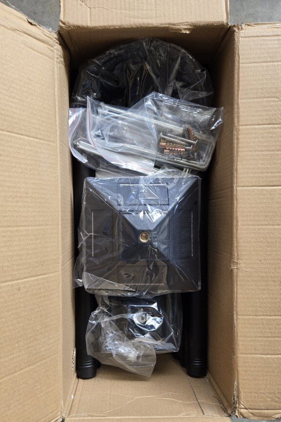 New in box black lamp post. Solar powered.