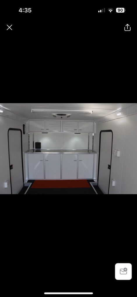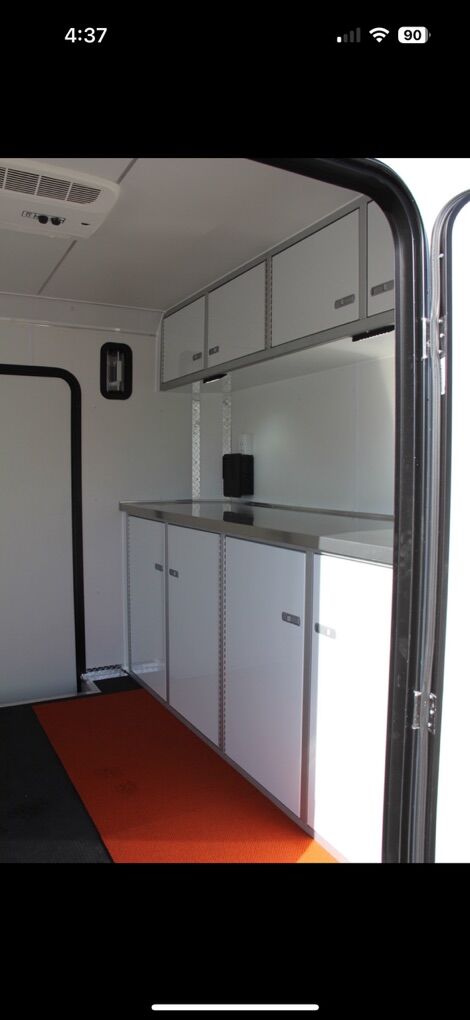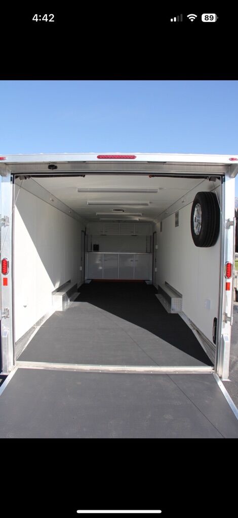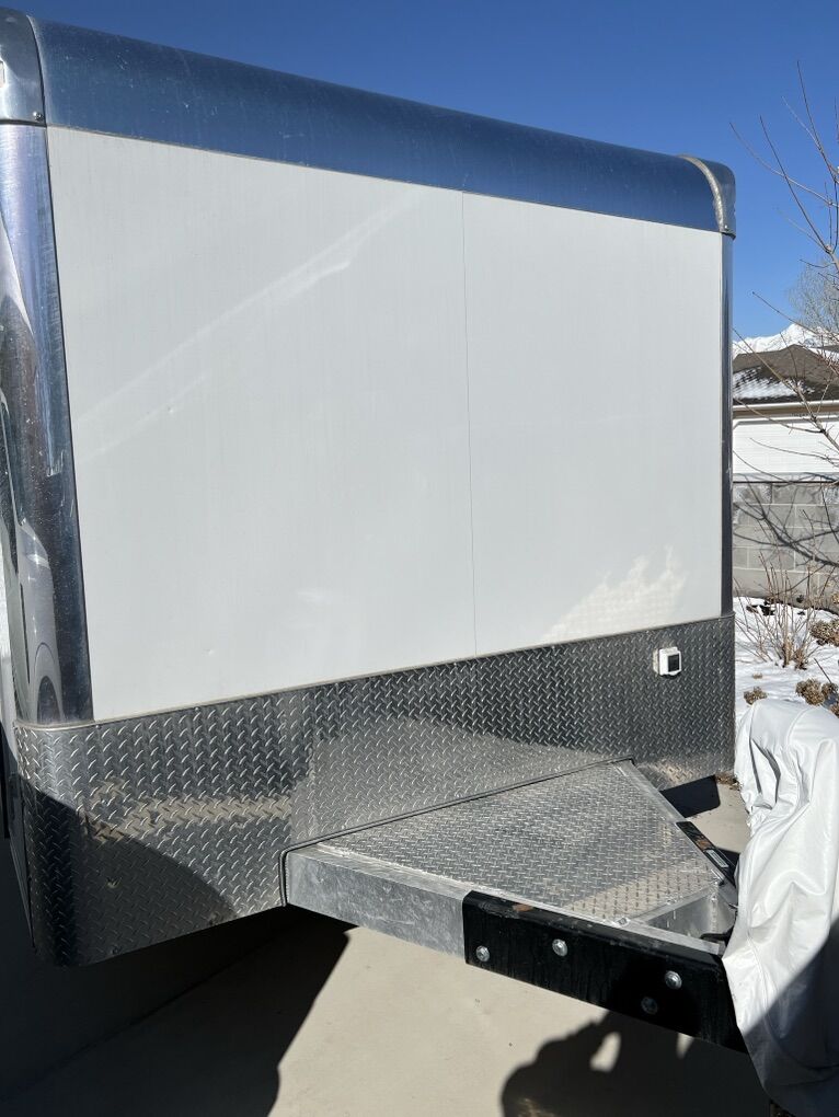 White with dual entry doors Tandem Axles (5,200 lbs) 7’ interior height 8’ 6” width Full Solar system fully integrated to the existing system. Solarize Powers 200 AH, 10 KW lithium Phosphate Battery, (8) 300 watt panels Insulated trailer A/C with heat pump Lots of lighting New tires with new spare Lift kit Rear spoiler Rear bogie wheels Beaver tail Aluminum on tongue Electric Jack