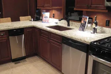 -Complete galley with service for 12. Granite counter tops in galley and bathrooms. Coffee maker, toaster, blender, electric can opener.