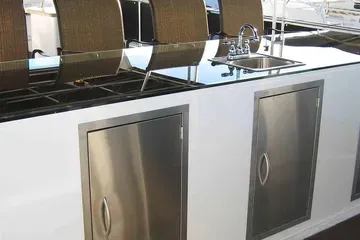 -Dual bars (mirrored) with sink, ice-maker, and 8 bar stools on upper deck