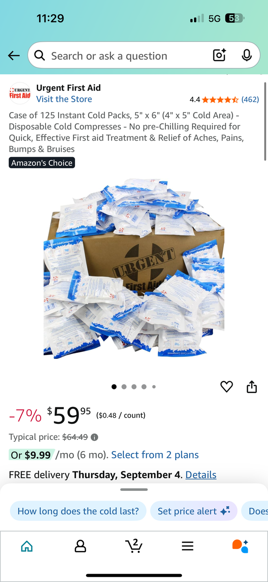 VenmoCase of 125 Instant Cold Packs, 5" × 6" (4" × 5" Cold Area) - Disposable Cold Compresses - No pre-Chilling Required for Quick, Effective First aid Treatment & Relief of Aches, Pains, Bumps & Bruises — New