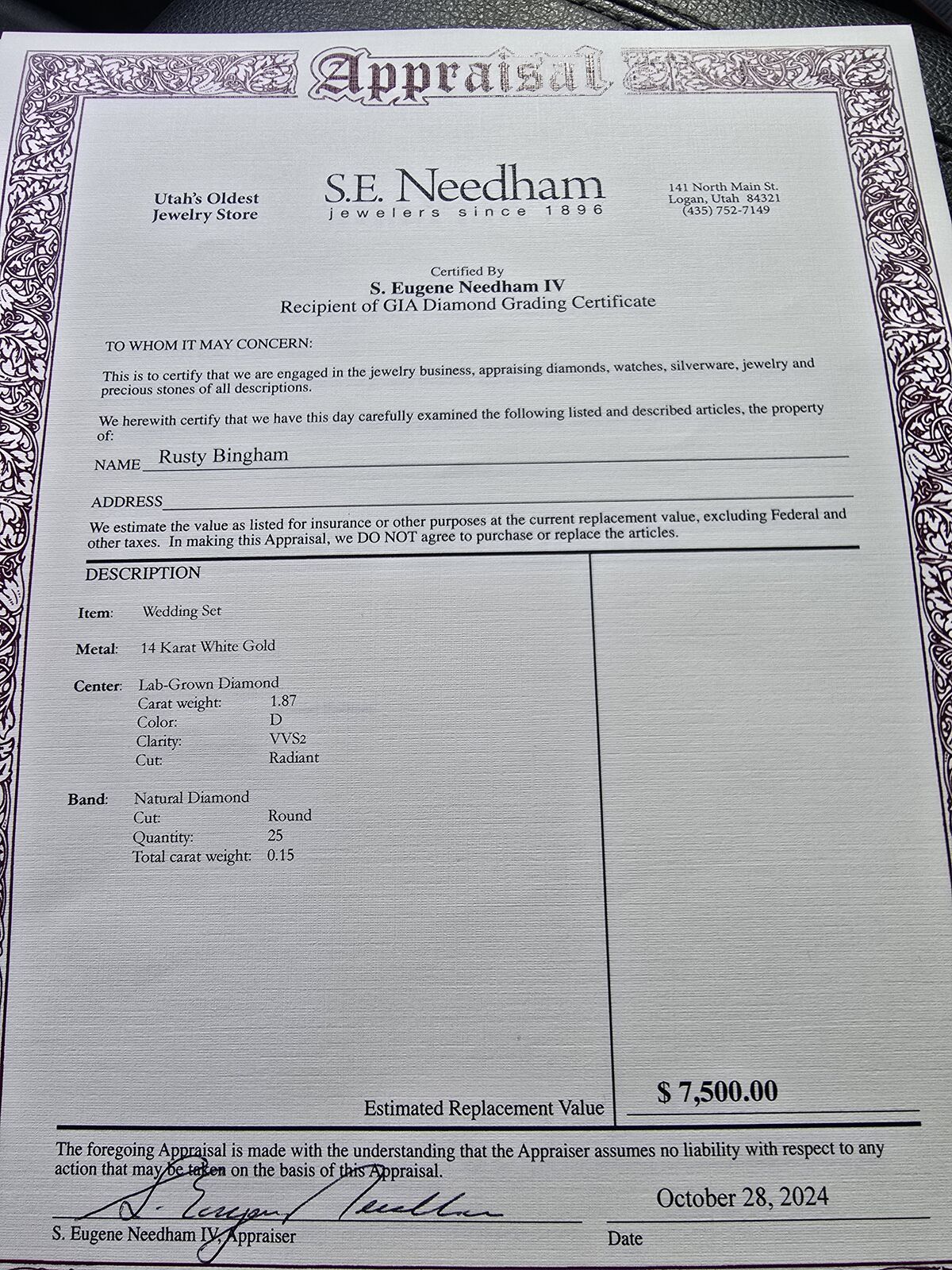 VenmoWedding ring and band set. 1.87 Carat. Asking $2,800/obo Also have a Diamond necklace. Asking $500/obo for the necklace.