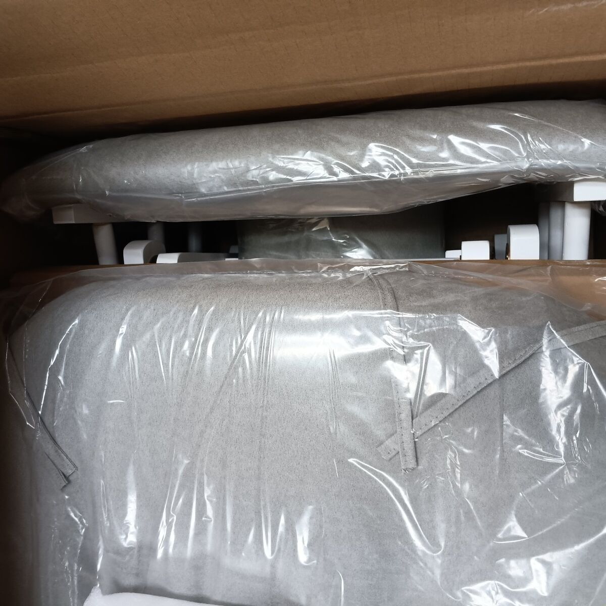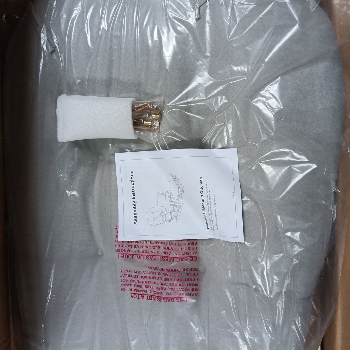 New in box Angel Line Windsor Glider and Ottoman, White Finish with Gray Cushions