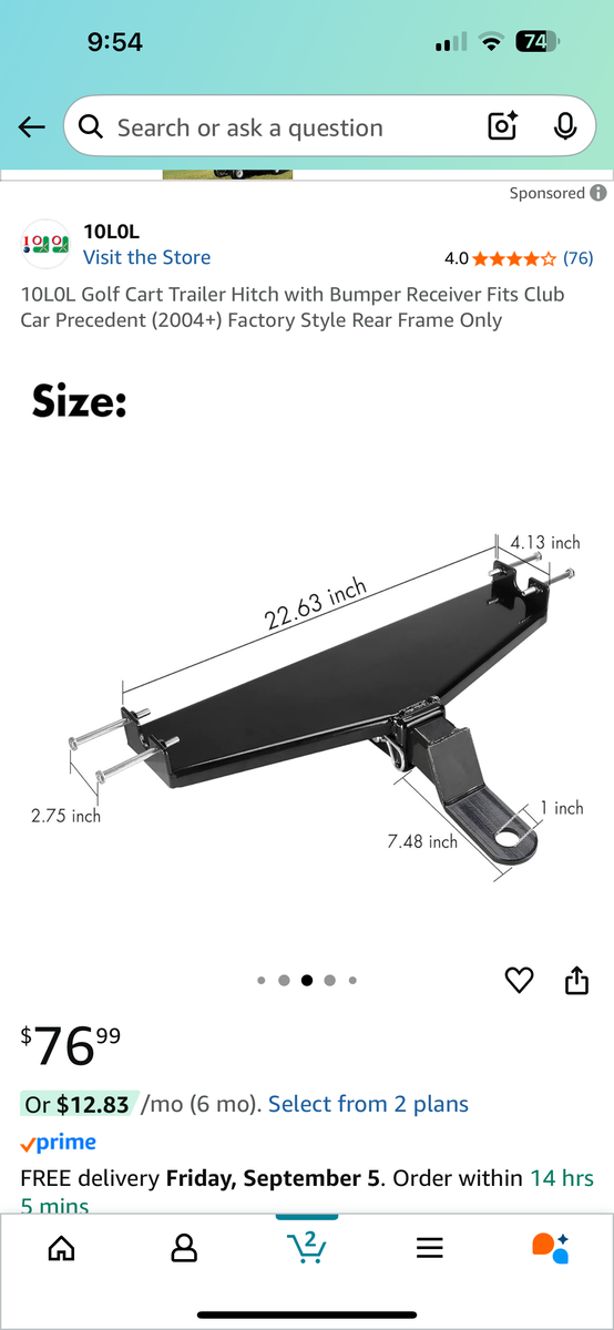 VenmoGolf Cart Trailer Hitch with Bumper Receiver Fits Club Car Precedent (2004+) Factory Style Rear Frame Only — New