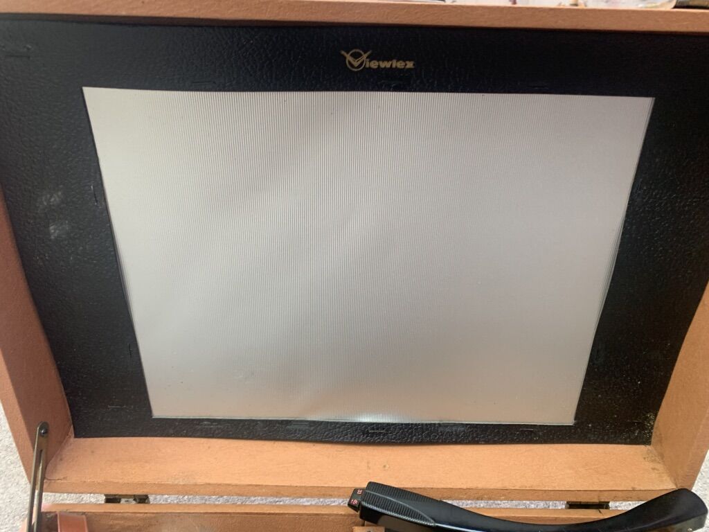 What I have here is a really neat example of the days before PowerPoint. This is a record player and projector combo with a screen. It allows you to project images synchronized to audio. It would have probably been used in business or educational settings.