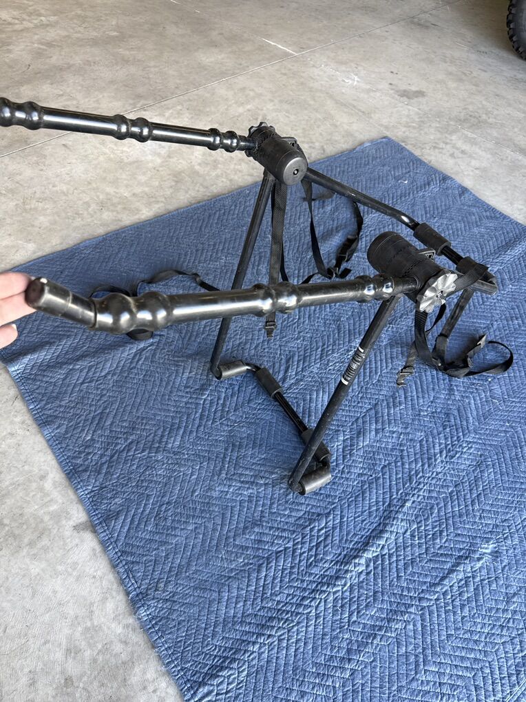 Bike rack for use with sedan or SUV. Can be mounted over spare tire or attached to car trunk. $25 OBO