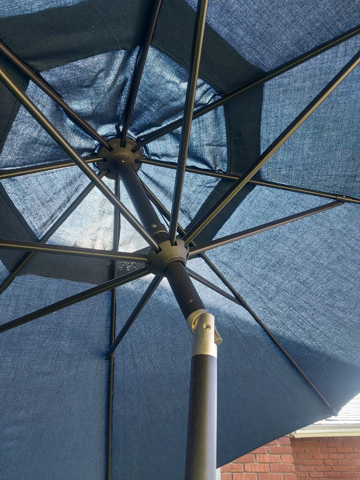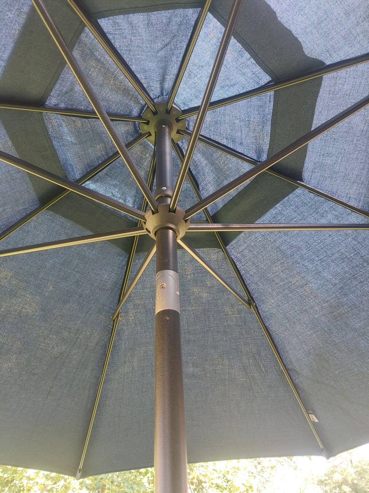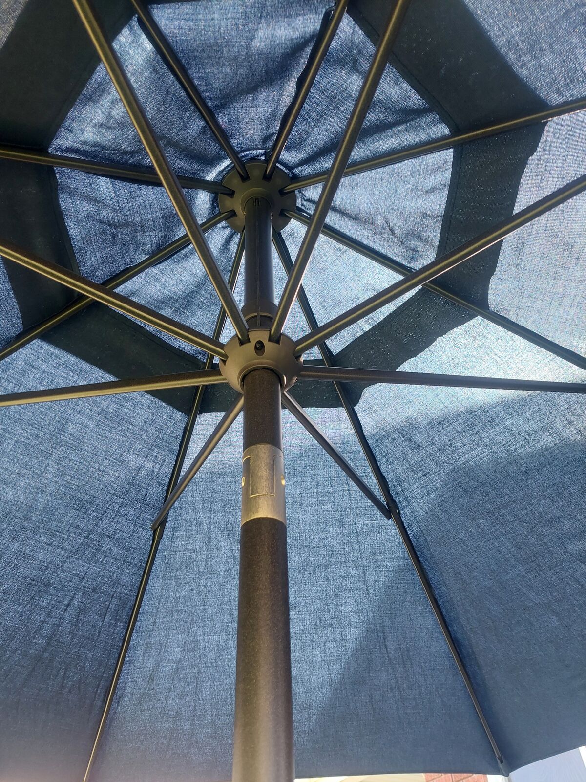 10ft indigo sunbrella. This is new and has never been used. I only took it out of its case for the pictures. It has the auto tilt function and vented top. Text is best 435-881-6391. Thanks for looking