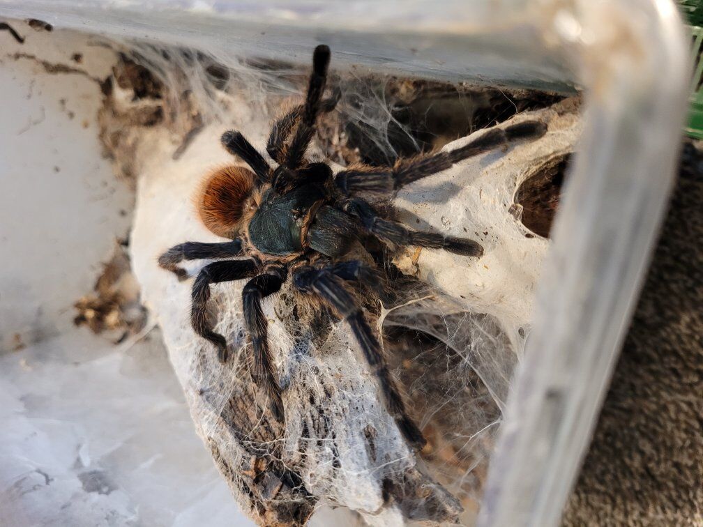 This is my female GBB (Chromatopelma Cyaneopubescens) who I raised from a juvenile. She's an absolute stunner! Comes with her enclosure. Cash preferred! I will not sell to kids.