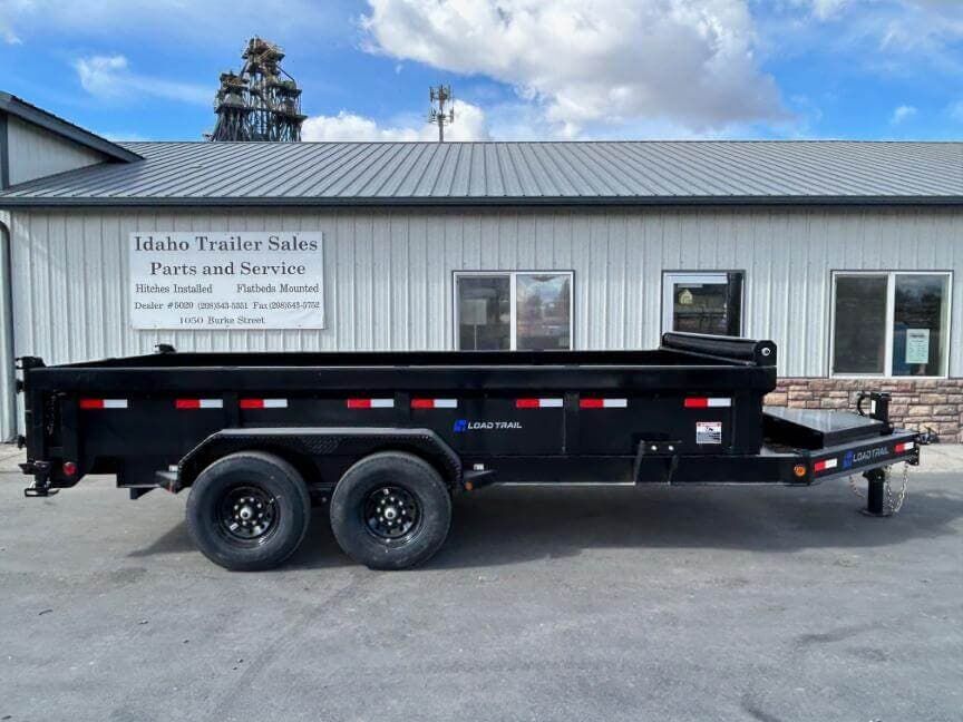 Load Trail DL 16-Foot Dump Trailer – 14K GVWR Open Equipment Trailer for Gravel and Dirt Hauling and Work Site Trash Removal.
