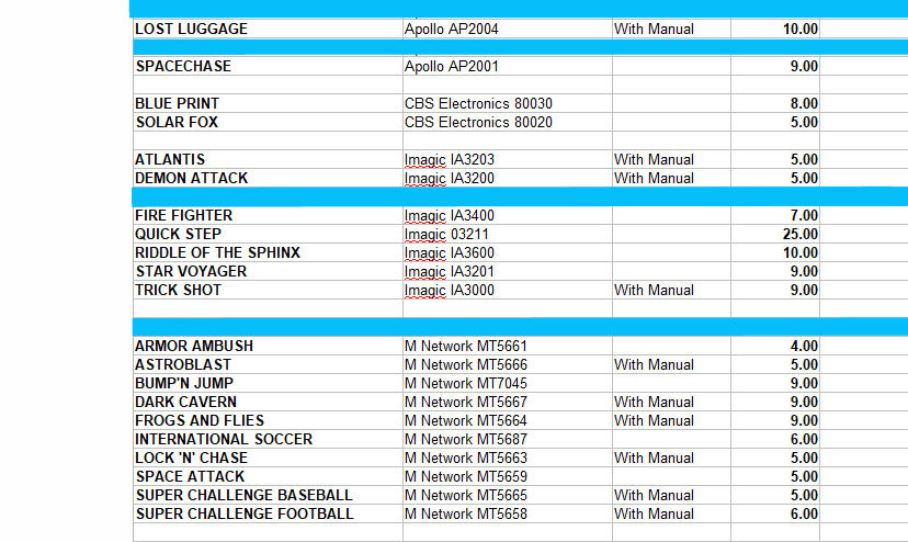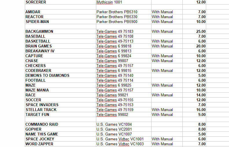 The full list of games including individual prices is shown in the pictures of this ad. The games with manuals are also indicated in this list. The CIB games are listed in another ad.