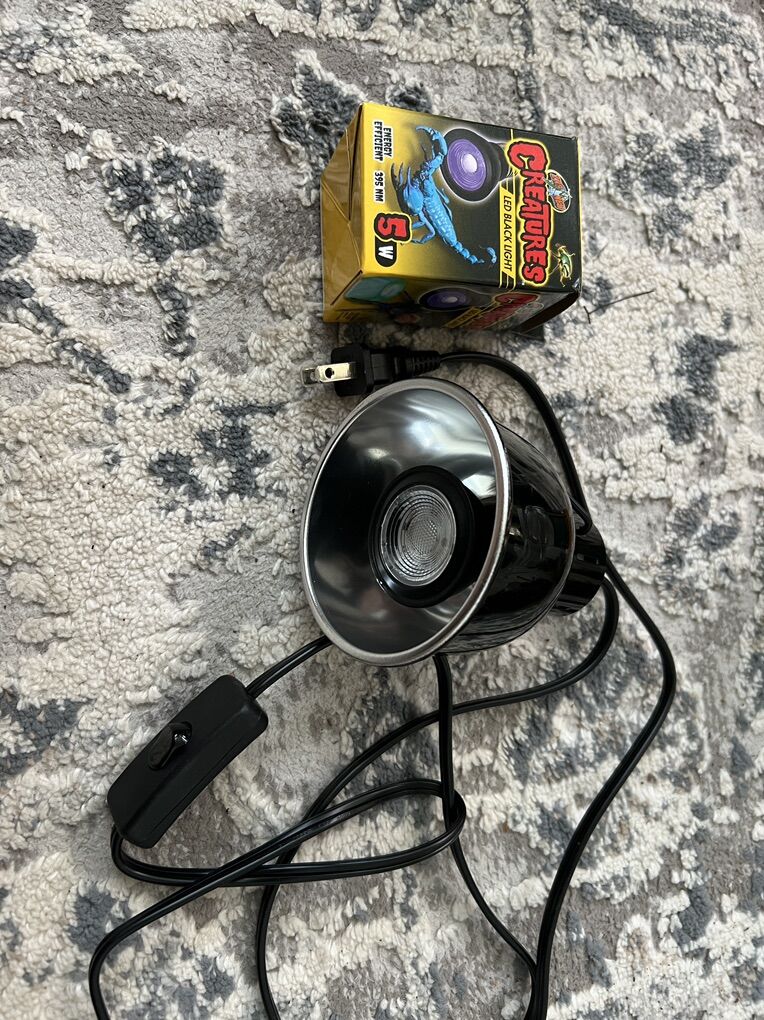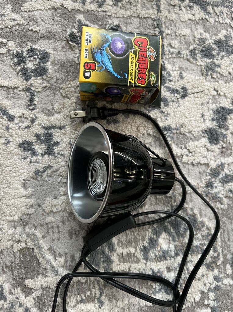 ApplePayI have a mini heat dome light that comes with two 5w levels black light bulbs! One is brand new in the box the other one is also pretty new in the light fixture. This is perfect to see your scorpion better or to use for a small reptile in a small enclosure!