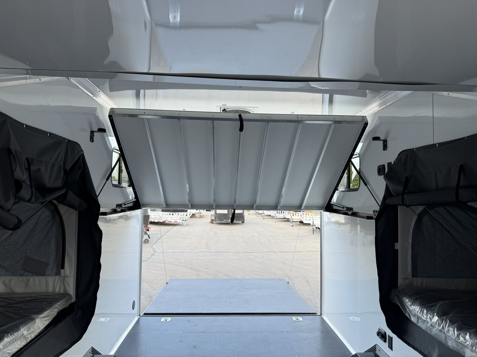 $327 A MONTH WITH ZERO DOWN WITH OUR SPECIAL LOCAL CREDIT UNION PARTNER!!! NO PRE-PAYMENT PENALTIES!!! 19 INCH GROUND CLEARANCE!!! OFF ROAD TIRES!!! NEW RAYNGER OFF ROAD TOY HAULER MODEL!!! GO WHERE OTHERS ONLY DREAM!!! .080 ALUMINUM EXTERIOR!!! SLEEPS 6 ADULTS!!! 2x DROP DOWN/POP OUT TENTS!!! (Need Summer or Winter Insulation? Check out these covers: https://gekkopopoutcovers.com/ ) DO YOU WANT A BATHROOM/SHOWER/KITHCHEN AREA? ASK SALES STAFF FOR PRICING!!! FULLY INSULATED!!! HEATING AND A/C READY/FRAMED/STUBBED/WIRED!!! STOW AND GO QUEEN BED!!! 84 Inch Rear Entry Height!!! 30 Amp Power pkg with Shoreline 30 Amp Cord!!! Power Fan Ventilated!!! Water Resistant Poly Bead Flooring!!! Hard Rubber Sealed interior Deck as well as exterior underbelly!!! EXTRA TOUGH!!! Patio Conversion Jacks!!! Tongue Mounted Generator Storage Box!!! 4 Foot LED Party Lights for nighttime fun!!! Marine Battery with Box. You HAVE to come see this BEAST in person, it will amaze you!!!