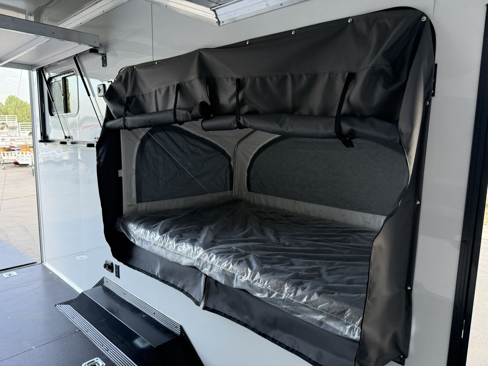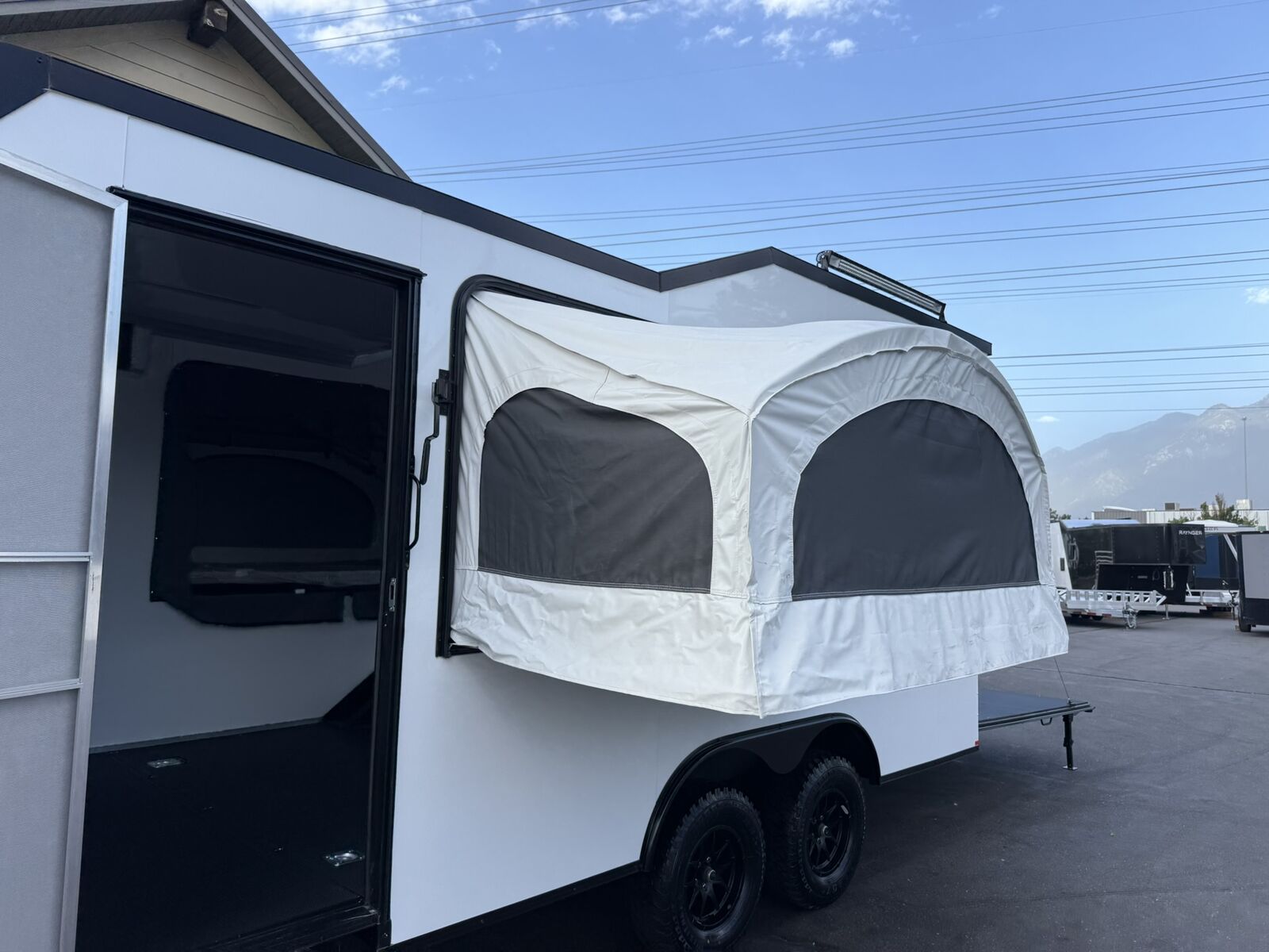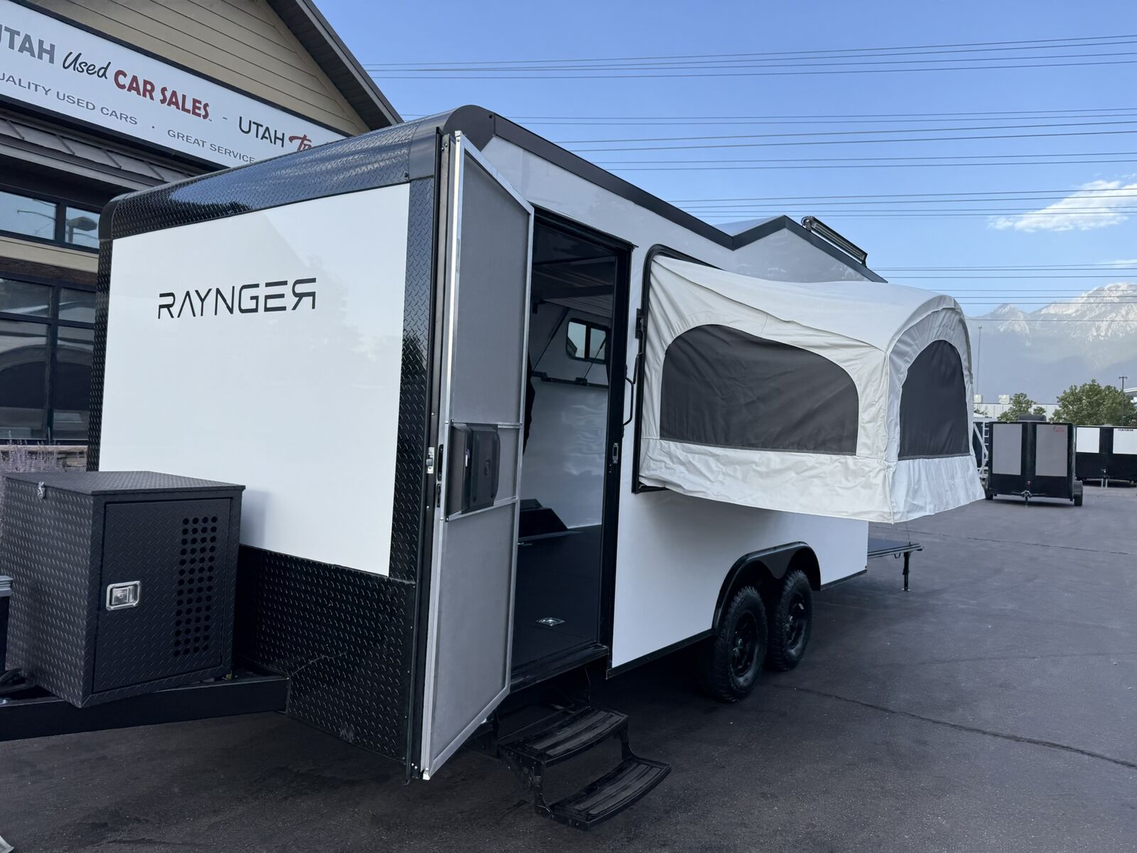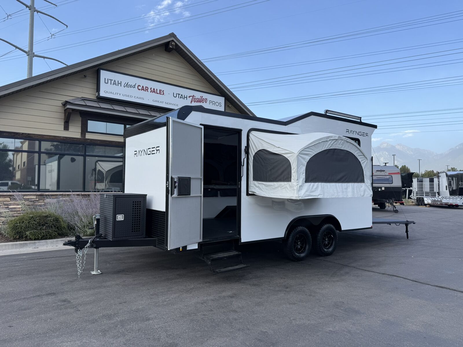 $327 A MONTH WITH ZERO DOWN WITH OUR SPECIAL LOCAL CREDIT UNION PARTNER!!! NO PRE-PAYMENT PENALTIES!!! 19 INCH GROUND CLEARANCE!!! OFF ROAD TIRES!!! NEW RAYNGER OFF ROAD TOY HAULER MODEL!!! GO WHERE OTHERS ONLY DREAM!!! .080 ALUMINUM EXTERIOR!!! SLEEPS 6 ADULTS!!! 2x DROP DOWN/POP OUT TENTS!!! (Need Summer or Winter Insulation? Check out these covers: https://gekkopopoutcovers.com/ ) DO YOU WANT A BATHROOM/SHOWER/KITHCHEN AREA? ASK SALES STAFF FOR PRICING!!! FULLY INSULATED!!! HEATING AND A/C READY/FRAMED/STUBBED/WIRED!!! STOW AND GO QUEEN BED!!! 84 Inch Rear Entry Height!!! 30 Amp Power pkg with Shoreline 30 Amp Cord!!! Power Fan Ventilated!!! Water Resistant Poly Bead Flooring!!! Hard Rubber Sealed interior Deck as well as exterior underbelly!!! EXTRA TOUGH!!! Patio Conversion Jacks!!! Tongue Mounted Generator Storage Box!!! 4 Foot LED Party Lights for nighttime fun!!! Marine Battery with Box. You HAVE to come see this BEAST in person, it will amaze you!!!