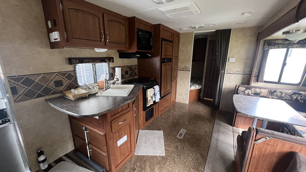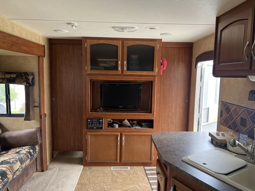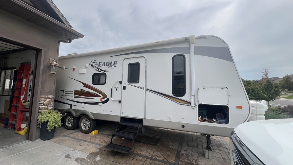 2012 Jayco 284-BHS Travel Trailer (28’4”) Larger slide out Power tongue lift Power awning Large fresh water tank (85 gallons) Two large propane tanks Air Conditioning Outdoor shower TV Stereo with outdoor speakers