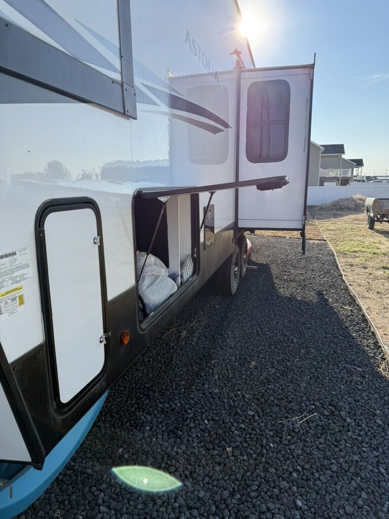 This is our 2022 Dutchman Astoria 29BHS. We have made so many memories and love this trailer so much, but we don't use it enough to justify the payment on it. Didn't make it out this last summer and only once or twice the summer before so we are selling it. Everything works great. Taken care of professionally, my father started a trailer dealership before we sold it so I've been in the trailer space since I was little. Has a cover for the winter and has always been winterized and drained after every trip along with the proper cleaning of each tank. Has 2 slides, one for the living room dining table and one for the master closet. Personal items will be pulled out of the trailer before sale. Negotiations can be made for extras, (plates cups blankets bedding gas generator etc) but if not interested will be removed from the trailer before sale. In the living room there is a tv that lifts up from under the counter. There is usb A ports as well as 110V ports and usb C for all types of charging needed. It is a 5th wheel and the hitch can be in negotiations along with the trailer. I believe it still has a warranty on it but I will have to check if it's transferable. Upgraded to Hercules H901 tires and the tanks are 50 for fresh and 80 combined between grey and black tanks. Message with questions or to set up a time to come check her out. NO TRADES NO SCAMS I know the scam dance and i don't dance so don't try. Shoot me a text and let's work something out. Asking 54k cash or wire only unless I am there while you print a cashiers check.