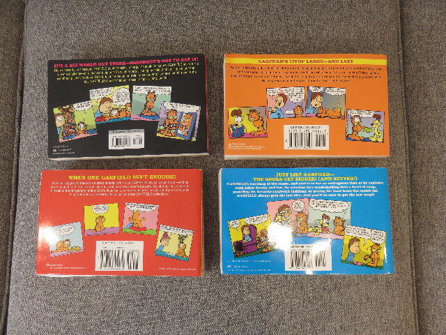 As the pictures show, I am selling, as a single lot for a single price, four mid-1990's Garfield "Fat Cat 3-Pack Books". These books are in absolutely excellent, like new condition, and only one of them was actually partially read decades ago.