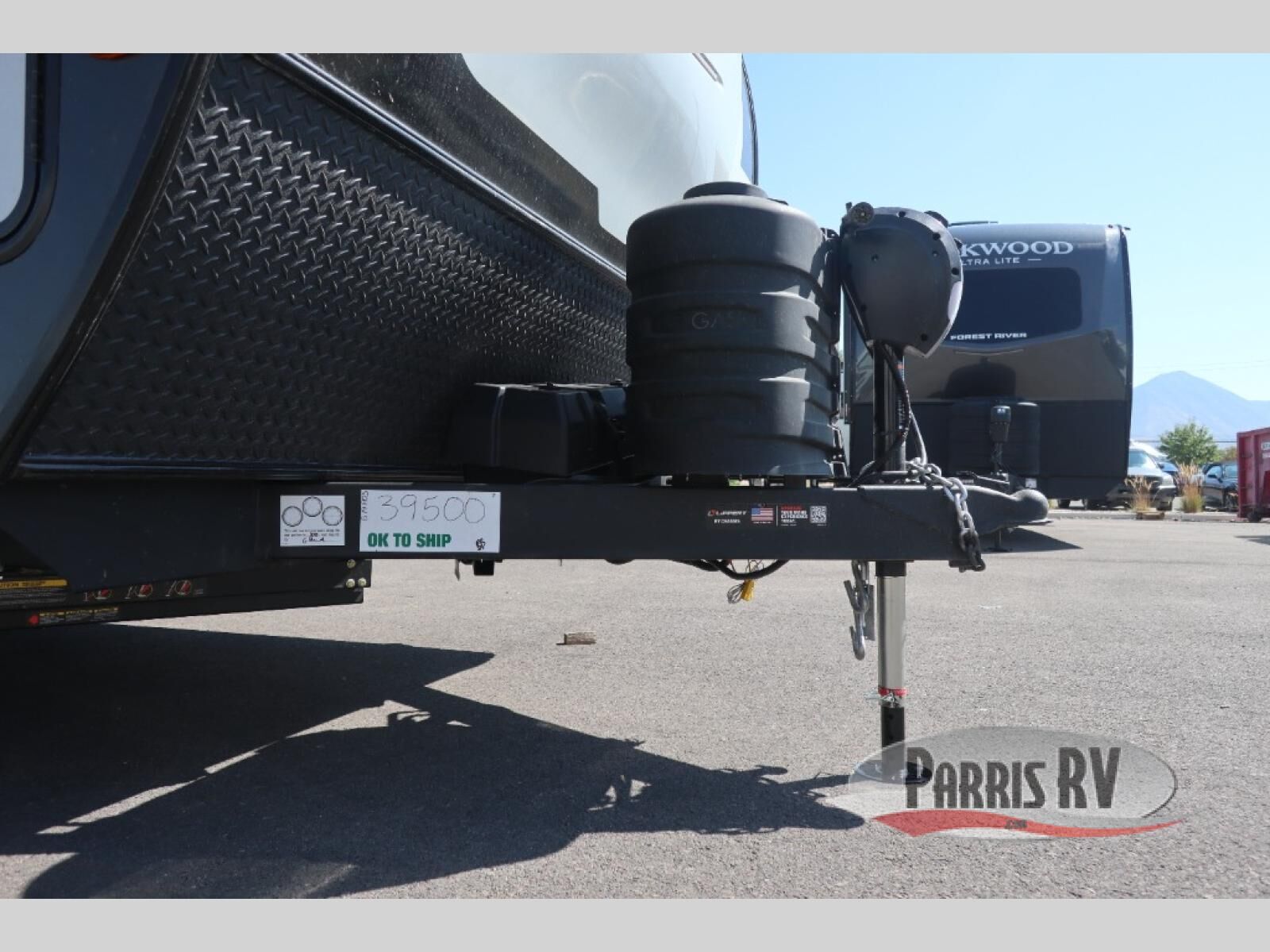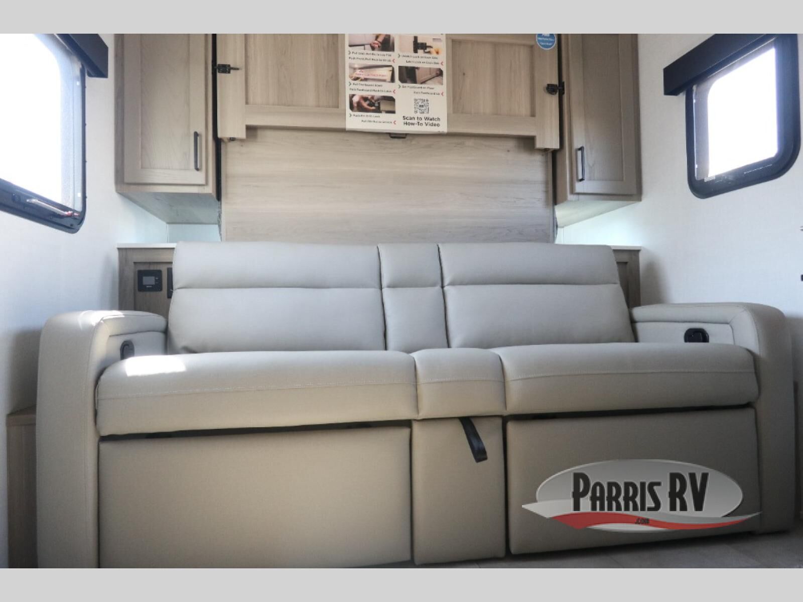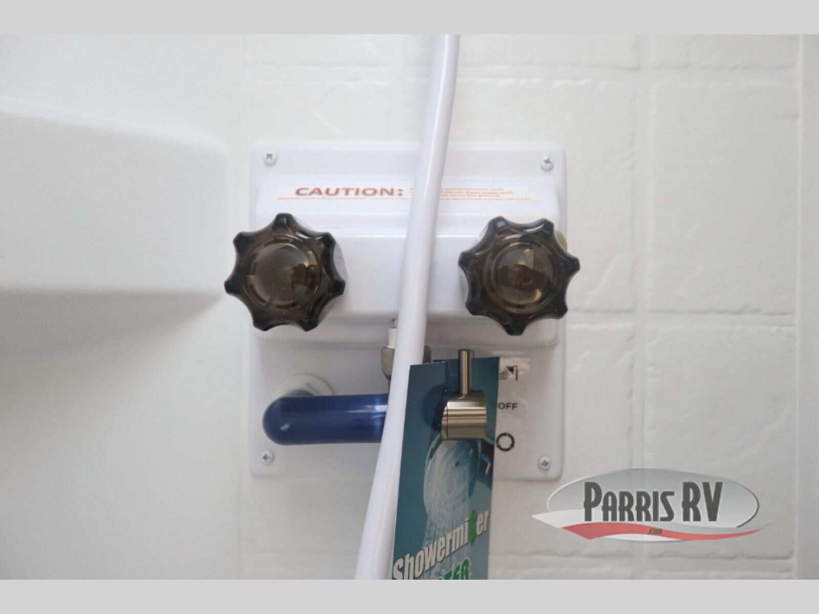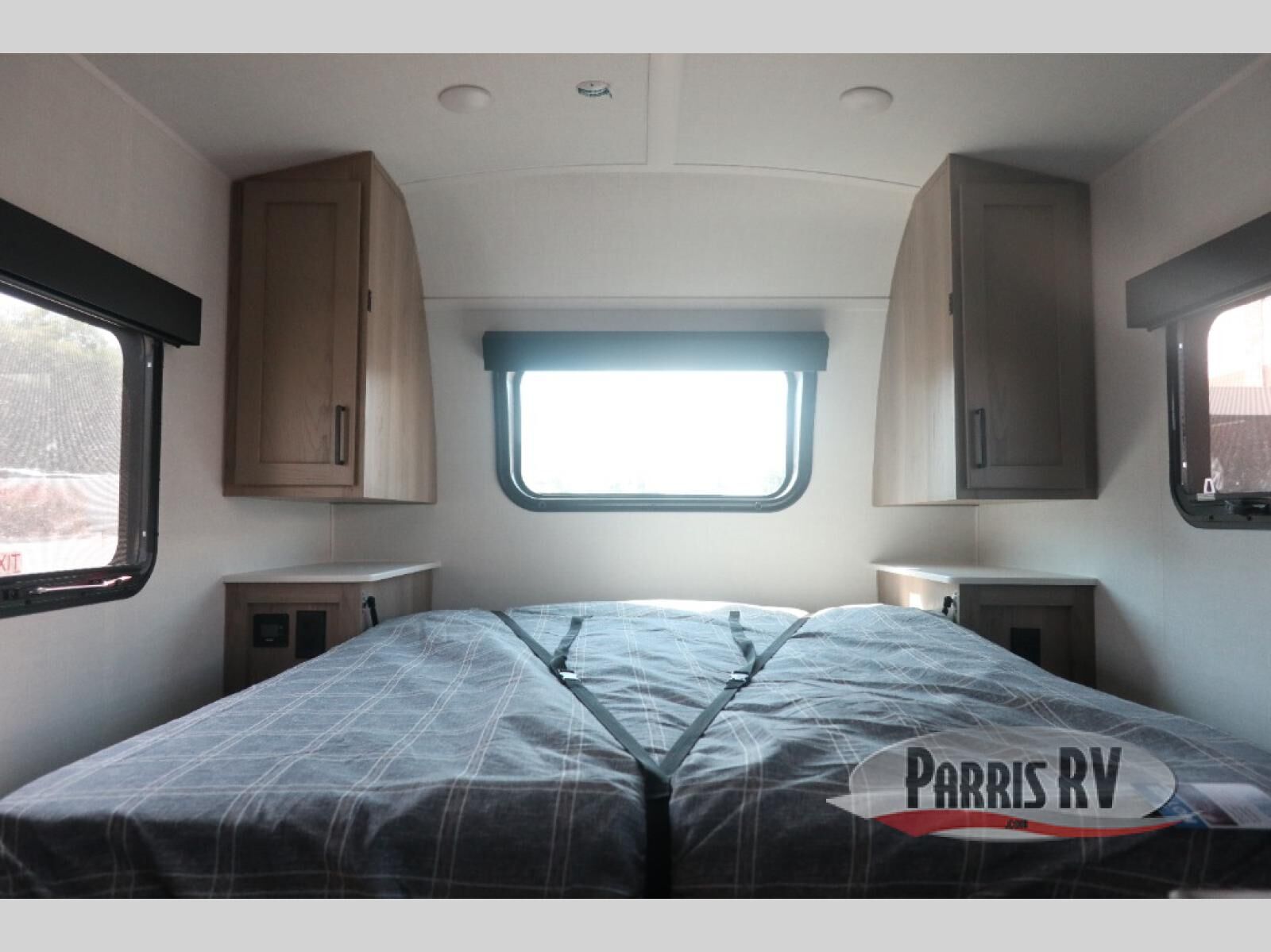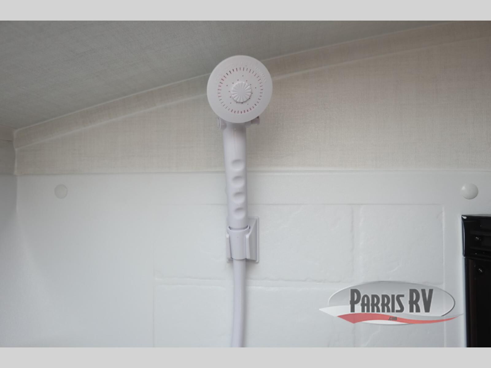 Comfortable sleeping space, convenient seating space, and a full rear bath makes this couple's trailer the one! You will love being able to relax on the sofa during the day, and sleep on the Murphy bed at night. There is a single slide out that will provide you more space to move around or cook meals, and the full bath includes a large shower so you won't feel cramped. If it's a rainy day you can watch movies on the 32" 12V TV, and if it's nice out, sit under the 14' power awning and cook lunch on the outside griddle. The possibilities are endless with this couple's trailer! The optional Power Package available on this model gives you the option to go off-grid for even longer amounts of time!