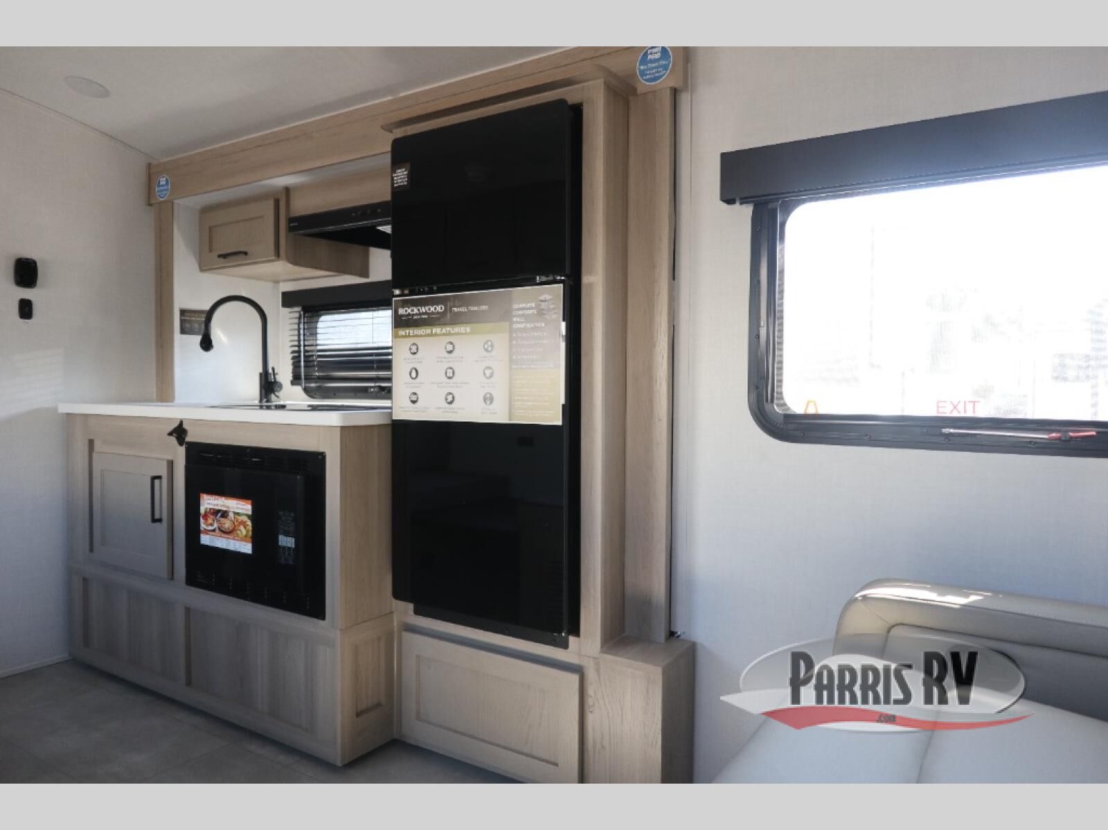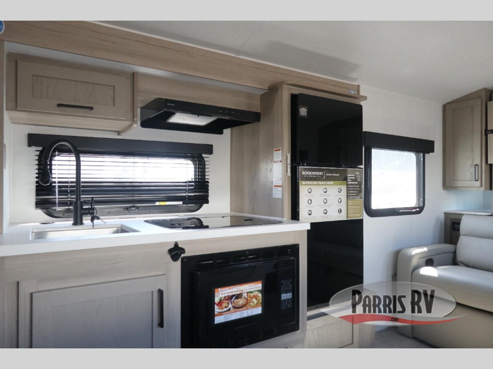 With any Rockwood GEO Pro travel trailer by Forest River you will enjoy easy towing, durable construction, and off-road capabilities with larger 15" tires and a lift kit! Each model is constructed with complete composite wall construction for added strength and durability, and the torsion axle, Rubber-Ryde suspension will make towing easier than ever. Inside, you'll find sleek roller shades for added privacy, a 12V refrigerator and a microwave, plus a 20,000 BTU furnace to keep you warm during the colder camping months.