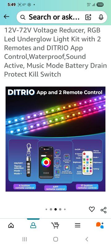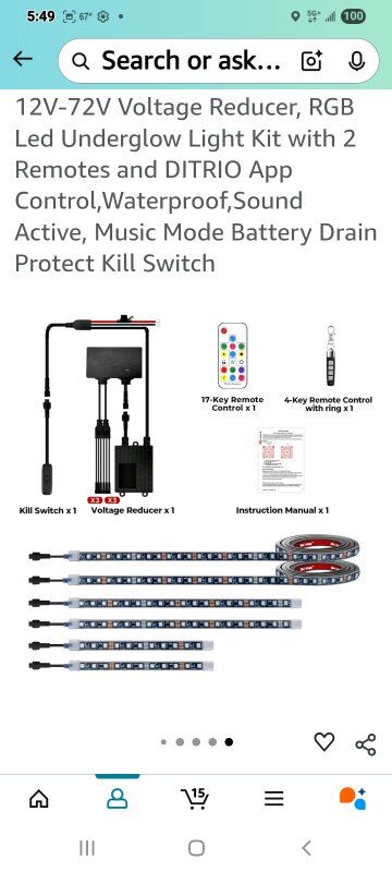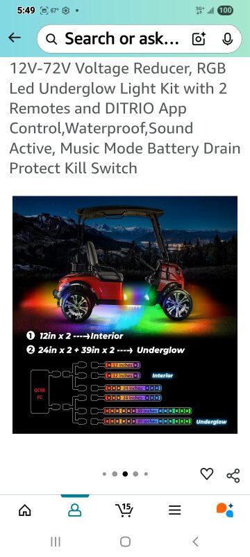 Built-in Voltage ReducerDITRIO golf cart lights specially design with a 12V-72V integrated voltage reducer.While most golf carts are 36V or 48V ,the majority of light kits are only 12V,our golf cart light kit can automatically convert voltages from 36V/48V to 12V.Please note that the voltage reducer should be installed in a safe location away from heat sources, as the converter may reach high temperatures during operation App and Remote ControlOperate with ease via the user-friendly DITRIO App, along with a 17-key remote and a 4-key remote. Let you effortlessly adjust colors, brightness, speed, and lighting patterns. What’s more, the golf cart lights can sync with your music—whether from the App or your phone’s microphone—pulsing to the beat Glow Chasing LightHaving 16 million colors and a 'chase' color mode. Control them through a user-friendly app that manages brightness and offers 213 pre-set strobe modes where colors flow and shift smoothly across the light strip like a moving wave, adding a lively, eye-catching vibe to your space, perfect for golf carts decorative Waterproof & Short Circuit ProtectionBuilt in waterproof connector with a water-tight screw on cap ,Comes with kill switch,prevents battery drain when the car is off, and waterproof design for use in any riding conditions, Blinks red LED when it detects a short to alert you, opens circuit during high voltage or overheating to prevent damage Easy InstallationOur plug-and-play LED flex strips make installation a breeze. Explore our wide range of golf cart lights and accessories for a hassle-free experience