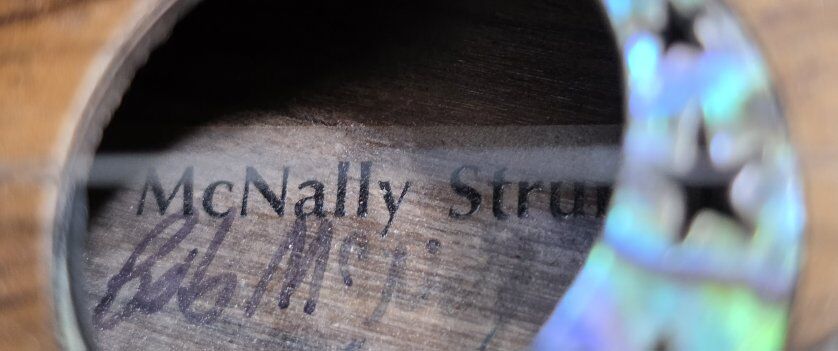 Pre-Owned McNally Koa D-33 Grand Strumstick Signed (2),and rare strumstick with fancy Inlay Stripes, these are D Strumsticks with gorgeous Abalone body inlays Model known for its ease of playability and use by both beginners and professional musicians. See all photos, text message is better, see my other adds, thank you.