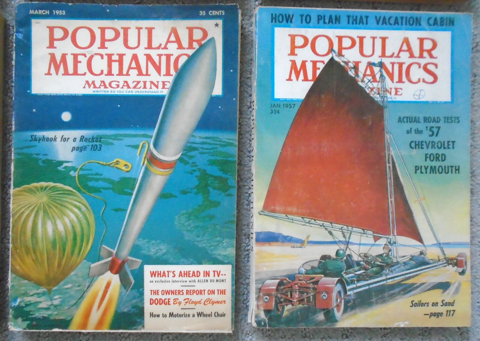 This is a group of eight vintage Popular Mechanics Magazines 1946-1957 (one is a Mechanix illustrated). All in accepatble, readable, condition. - No torn or missing pages.