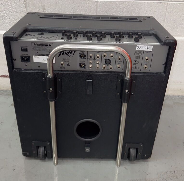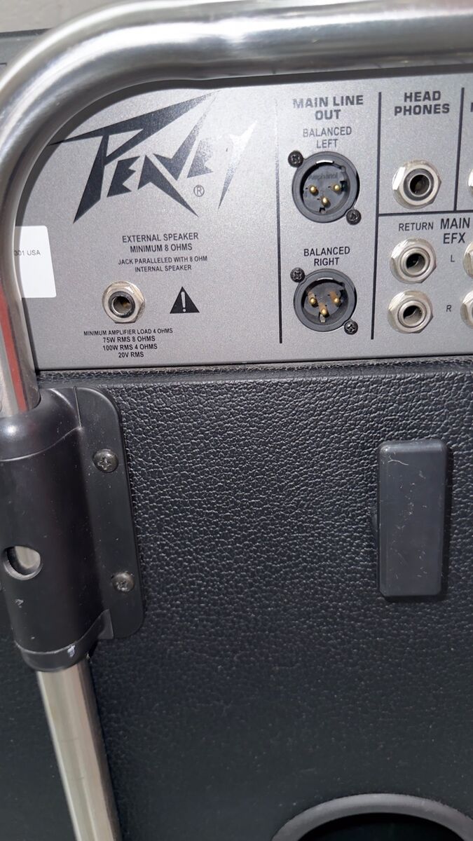 Peavey amp works great! It has some cosmetic blemishes. Please look at pictures for more details about the condition of it.