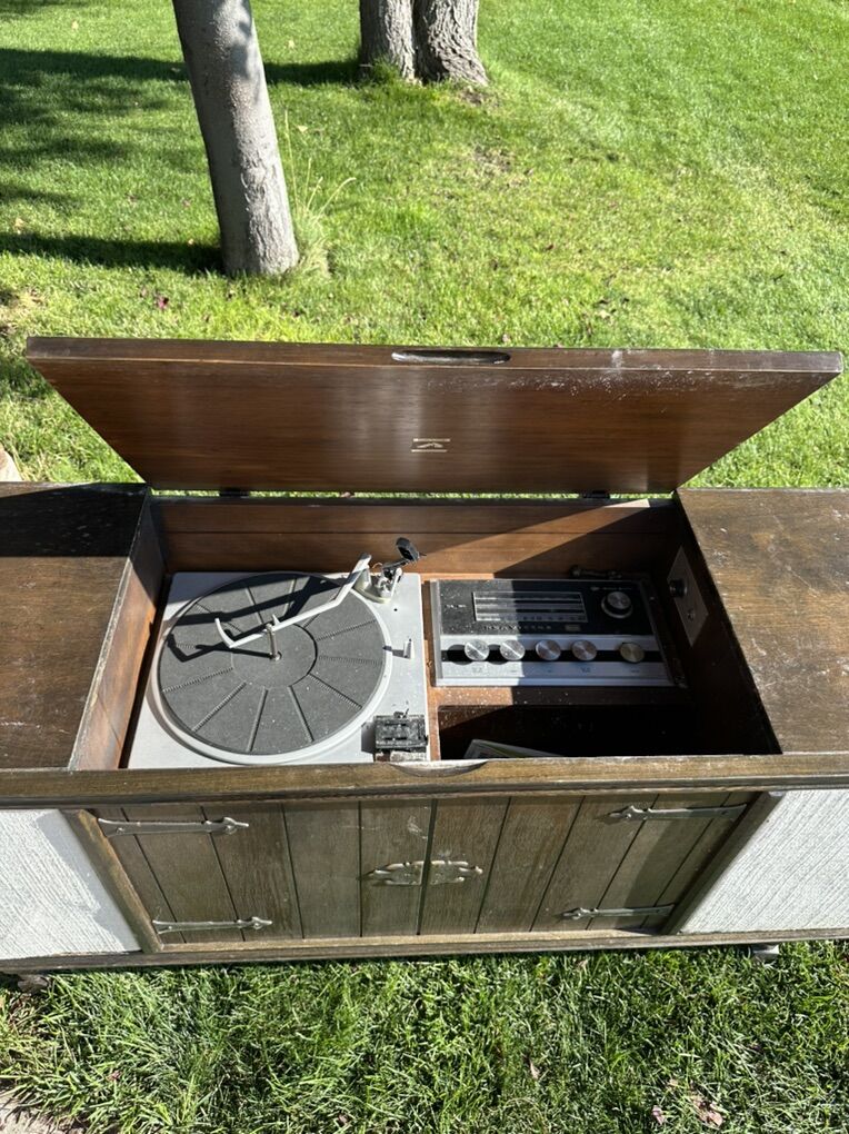 I have this old record player, not quite sure if if it works. The cord hook up with the wall got ripped off. But on the outside still really just needs a good cleaning. Also needs a needle for the actual record player, you can find them on Amazon . Or it could be a really good centerpiece or decoration. Just don’t have the space or time to try to fix it up to make it working again. Asking 10 I am open to offers.