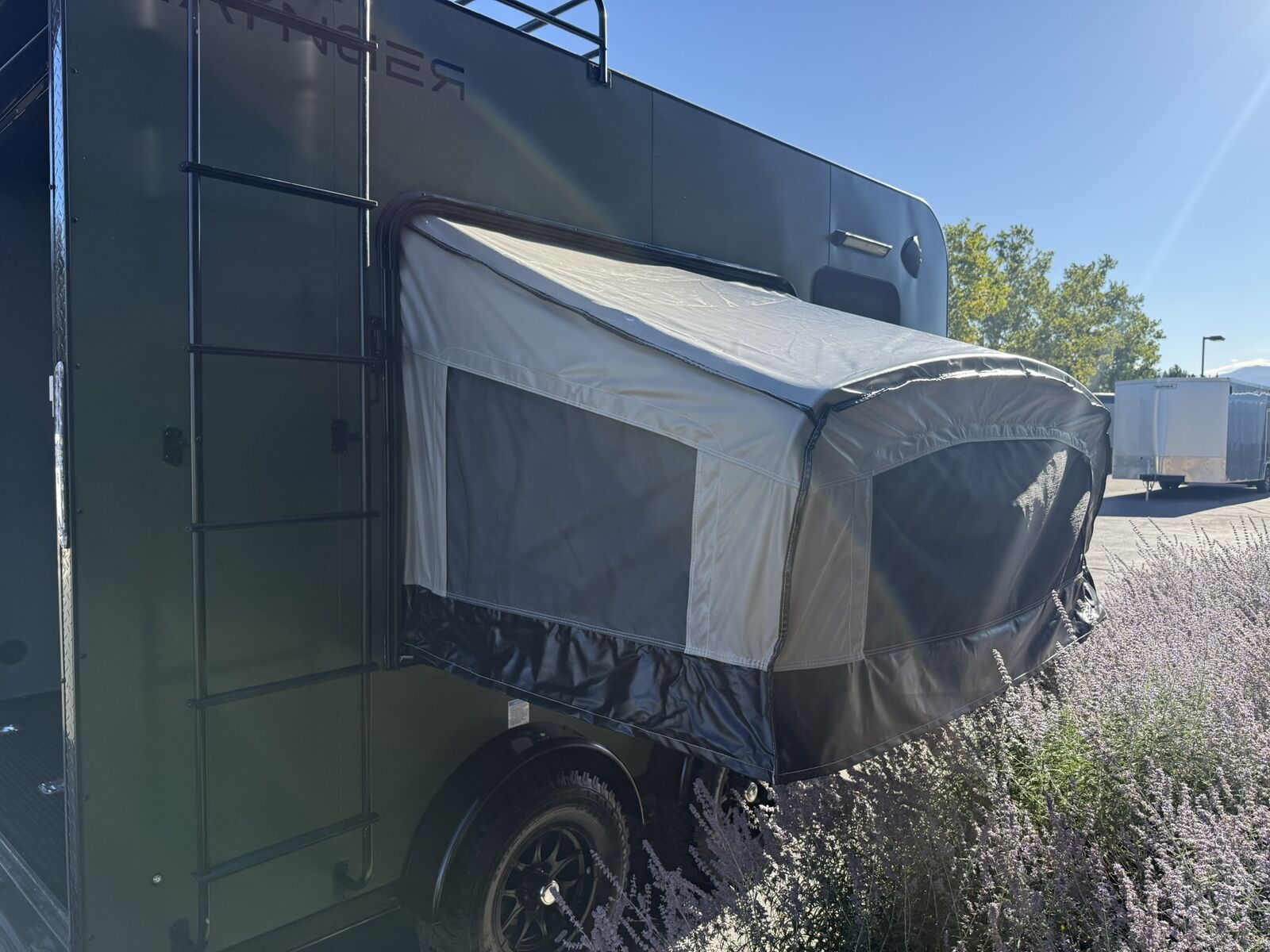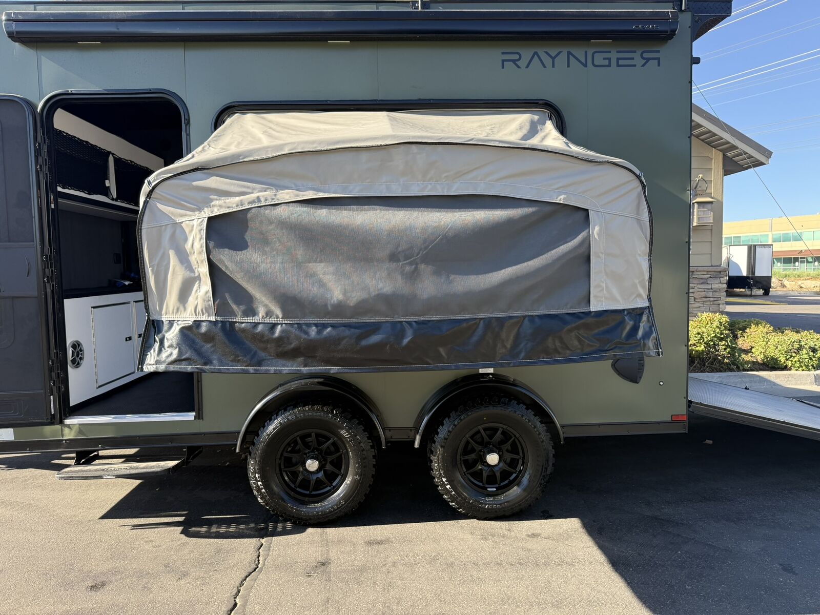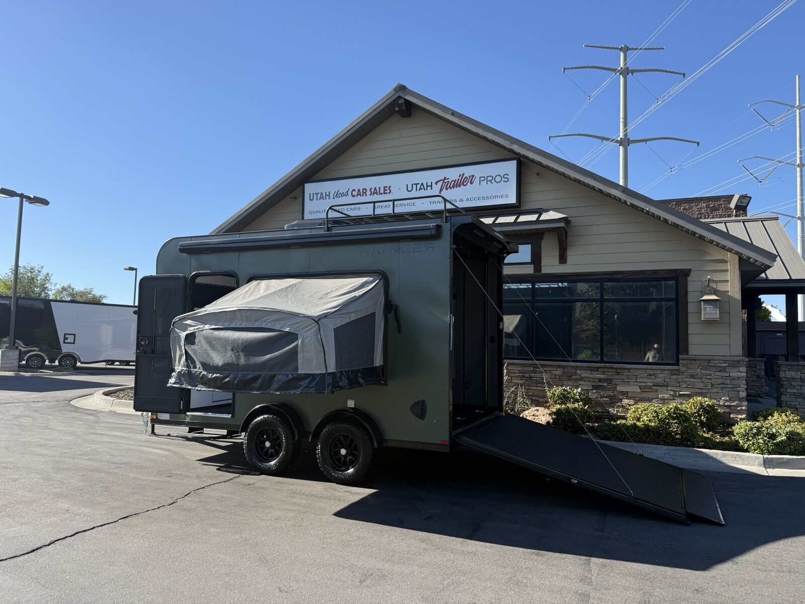 LIMITED TIME $263 A MONTH WITH ZERO DOWN WITH OUR SPECIAL LOCAL CREDIT UNION PARTNER!!! NO PRE-PAYMENT PENALTIES!!! NEW OFF ROAD MODEL!!! RAYNGER PREMIUM OFF ROAD TOY HAULER CAMPER!!! 18 INCH GROUND CLEARANCE!!! OFF ROAD TIRES!!! FULLY INSULATED!!! HEATING AND A/C!!! WET SOUND STEREO!!! TWO FOLD OUT/POP OUT TENTS WITH MATTRESS!!! CARGO BASKET!!! LED LIT AWNING!!! 7.5x14 RAYNGER OFF ROAD TOY HAULER, BRAND NEW MODEL FOR 2026!!! 87 Inch Rear Entry Height/90 INCH INTERIOR HEIGHT!!! 83 Inch Rear Entry Width!!! Aluminum Ventilated Locking Generator Box!!! UPGRADED TORSION AXLES!!! 12.5 Foot Long Garage Space!!! And Much MUCH MORE!!! Check out our Specs!!! Available in 16 foot and 18 foot models. 18 Foot Models can have 3 Fold Out Beds/Pop Out Tents. 16 Foot and 18 Foot Models will fit ANY stock 4 Seater Side by Side • 6” I Beam Frame• Flat Top Design• Flat Front Design• Wall Posts 16” on Center• Cross Members 16” on Center• Roof Bows 16” on Center• Rust Inhibiting Z-Tech Protection on Chassis• Ameraguard on Tongue• Ameraguard on Rear Bumper• Ameraguard Around All Door Openings and Stepwell• Ameraguard Around Edges of Ramp Door• 3500 LB Spring Axles• 2-5/16” Coupler• One-Piece Aluminum Roof• ST235/75R15 Aluminum Wheels with Chrome Center Caps• 2000# Ramp Door with Eberhard Latch• 30” Tempered Glass RV Door with Screen Door• .030 Exterior Metal with Screwless Sides• 24” Black Stoneguard• 3” Black Bottom Trim• Sand Pad• Black Door Hold• 2.7mm Charcoal Textured Vinyl Ceiling • 9mm Charcoal Textured Vinyl Walls• 3/4” Engineered Wood Floor with Rubber Coin Overlay• (6) 1200 LB Floor D rings Installed with Backer Plates• LED Clearance Lights and Tail Lights• LED Back-up Lights• No Show Wheel Box• Spoiler with Toggle Switch• RV Step• 7’ Interior• (2) 17” Chrome Base Lights with Switch• (1) Black 17” Spot Light with Switch• (1) 30 Amp Panel with Marine Plug• A/C Unit with Heat Strip• (3) Interior Recepts• (1) Exterior Recept• 12V Battery and Charge Line• Prep for Backup Camera• Wet Sounds System• (3) Blue Interior Cabinet Lights• (1) 6’ Section of Flex Lights• Black ATP Rear Header and Hoop• Black ATP Fenders• Insulated Walls & Ceiling• Base Cabinets• Overhead Cabinets with Netting Over Compartments• Pop Out Tent• Black ATP Storage/Generator Box Mounted On Tongue