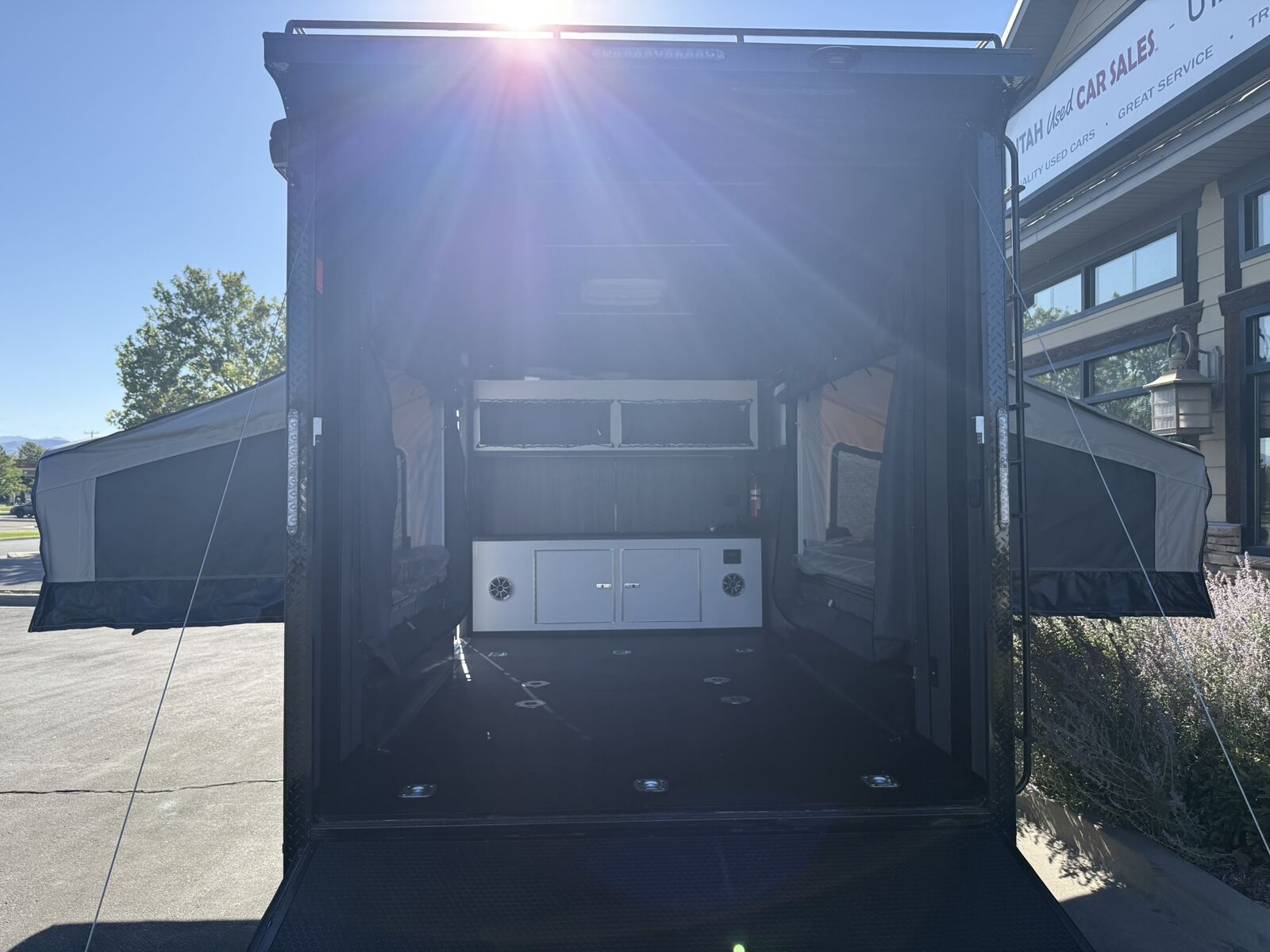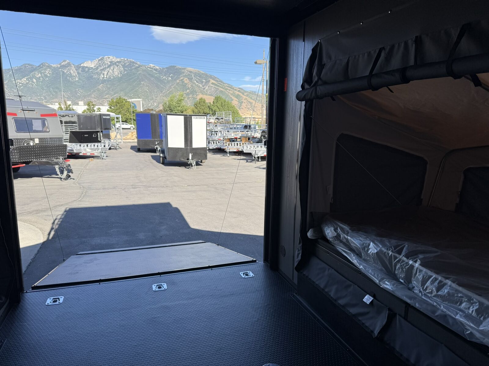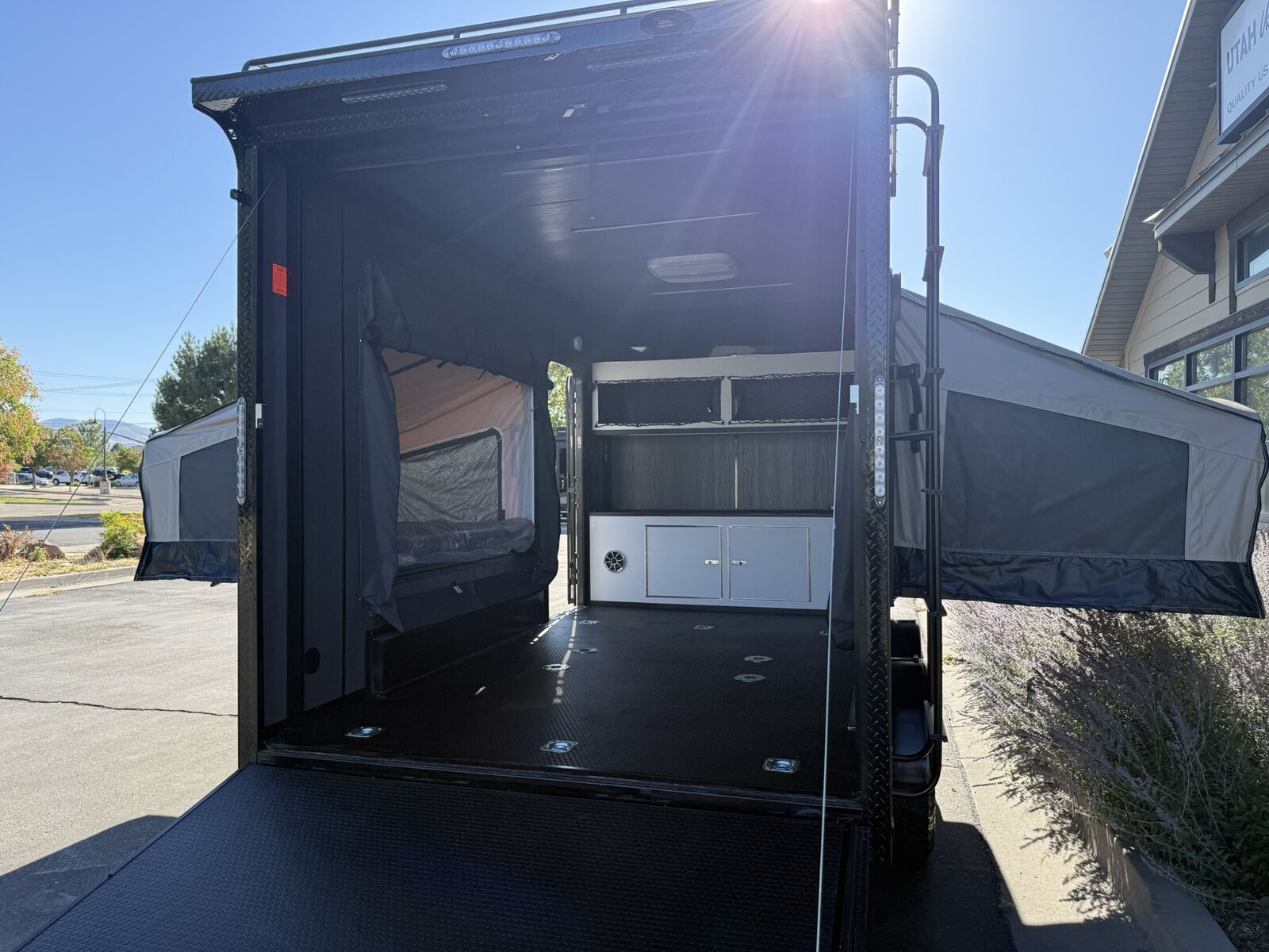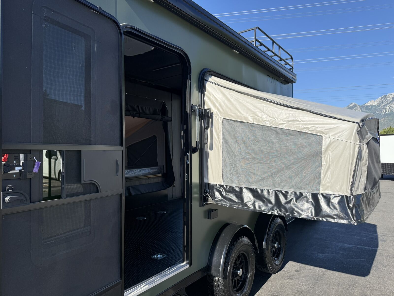 LIMITED TIME $263 A MONTH WITH ZERO DOWN WITH OUR SPECIAL LOCAL CREDIT UNION PARTNER!!! NO PRE-PAYMENT PENALTIES!!! NEW OFF ROAD MODEL!!! RAYNGER PREMIUM OFF ROAD TOY HAULER CAMPER!!! 18 INCH GROUND CLEARANCE!!! OFF ROAD TIRES!!! FULLY INSULATED!!! HEATING AND A/C!!! WET SOUND STEREO!!! TWO FOLD OUT/POP OUT TENTS WITH MATTRESS!!! CARGO BASKET!!! LED LIT AWNING!!! 7.5x14 RAYNGER OFF ROAD TOY HAULER, BRAND NEW MODEL FOR 2026!!! 87 Inch Rear Entry Height/90 INCH INTERIOR HEIGHT!!! 83 Inch Rear Entry Width!!! Aluminum Ventilated Locking Generator Box!!! UPGRADED TORSION AXLES!!! 12.5 Foot Long Garage Space!!! And Much MUCH MORE!!! Check out our Specs!!! Available in 16 foot and 18 foot models. 18 Foot Models can have 3 Fold Out Beds/Pop Out Tents. 16 Foot and 18 Foot Models will fit ANY stock 4 Seater Side by Side • 6” I Beam Frame• Flat Top Design• Flat Front Design• Wall Posts 16” on Center• Cross Members 16” on Center• Roof Bows 16” on Center• Rust Inhibiting Z-Tech Protection on Chassis• Ameraguard on Tongue• Ameraguard on Rear Bumper• Ameraguard Around All Door Openings and Stepwell• Ameraguard Around Edges of Ramp Door• 3500 LB Spring Axles• 2-5/16” Coupler• One-Piece Aluminum Roof• ST235/75R15 Aluminum Wheels with Chrome Center Caps• 2000# Ramp Door with Eberhard Latch• 30” Tempered Glass RV Door with Screen Door• .030 Exterior Metal with Screwless Sides• 24” Black Stoneguard• 3” Black Bottom Trim• Sand Pad• Black Door Hold• 2.7mm Charcoal Textured Vinyl Ceiling • 9mm Charcoal Textured Vinyl Walls• 3/4” Engineered Wood Floor with Rubber Coin Overlay• (6) 1200 LB Floor D rings Installed with Backer Plates• LED Clearance Lights and Tail Lights• LED Back-up Lights• No Show Wheel Box• Spoiler with Toggle Switch• RV Step• 7’ Interior• (2) 17” Chrome Base Lights with Switch• (1) Black 17” Spot Light with Switch• (1) 30 Amp Panel with Marine Plug• A/C Unit with Heat Strip• (3) Interior Recepts• (1) Exterior Recept• 12V Battery and Charge Line• Prep for Backup Camera• Wet Sounds System• (3) Blue Interior Cabinet Lights• (1) 6’ Section of Flex Lights• Black ATP Rear Header and Hoop• Black ATP Fenders• Insulated Walls & Ceiling• Base Cabinets• Overhead Cabinets with Netting Over Compartments• Pop Out Tent• Black ATP Storage/Generator Box Mounted On Tongue