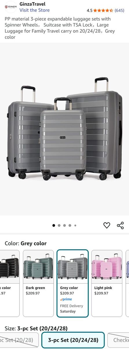 CashApp3-piece expandable luggage sets with Spinner Wheels, Suitcase with TSA Lock,Large Luggage for Family Travel carry on 20/24/28