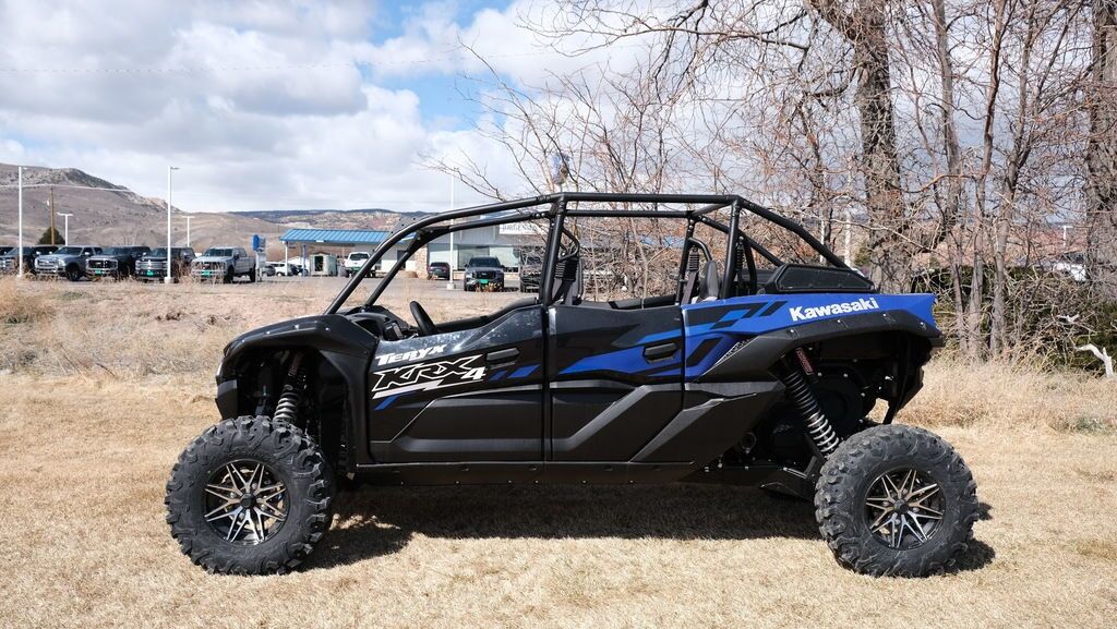 2025 Kawasaki Teryx® KRX4™ 1000Dominate Adventure with more friends and family with 4-passenger seating on the new Teryx® KRX4™ 1000. With an enlarged chassis, no sacrifices were made to accommodate the additional passengers. Advanced suspension technology combined with beefy wheels and tires deliver the ultimate riding experience. The Teryx KRX4 1000 reinforces and elevates the reputation of purpose-built Kawasaki sport side x sides.Features may include:CAPABILITYDURABLE AND CAPABLETake on the great outdoors with the ability to conquer tough terrain while offering superb control and comfort. Soak up technical obstacles with confidence so you can focus on the fun ahead.CONFIDENCEDESIGNED TOUGHThoughtful design is evident by the burly frame and ROPS, massive suspension components, and extensive undercarriage protection.COMFORTCLASS-LEADING COMFORTKawasaki engineers placed great emphasis on carefully designing a roomy rear passenger space that is large enough to comfortably accommodate 4 full-sized adults. Thanks to its rugged performance, advanced technology, and superb class-leading comfort, the Teryx® KRX4™ 1000 side x side is ready to take you and your passengers on an adventure for the memory books.ADDITIONALNEW Showa 2.5 piggyback shocksNEW high output AC generatorOn-the-fly electrically selectable 4WD and front differential lockLarge volume Continuously Variable Transmission (CVT) with centrifugal clutch and high-quality beltDownhill engine braking