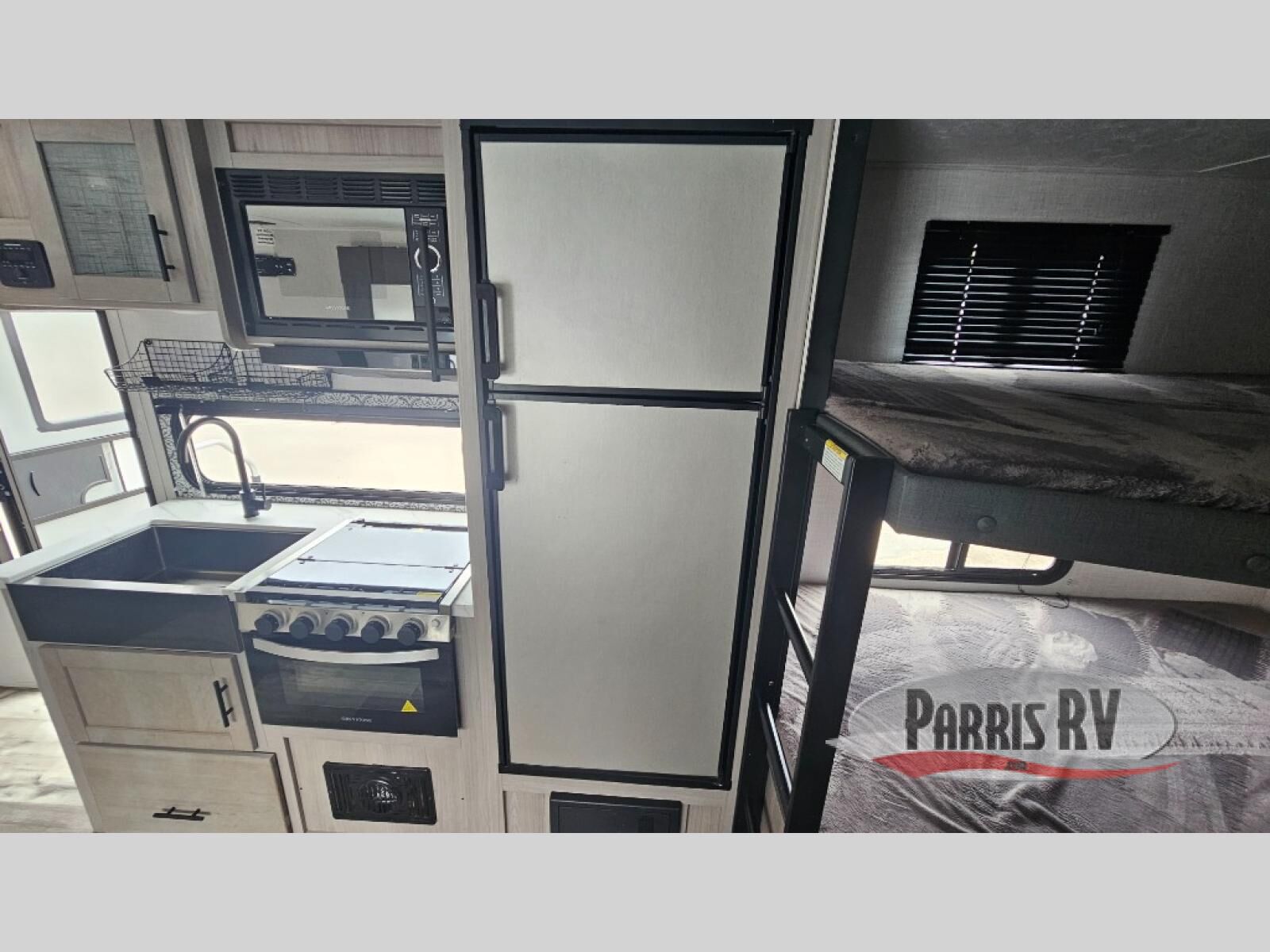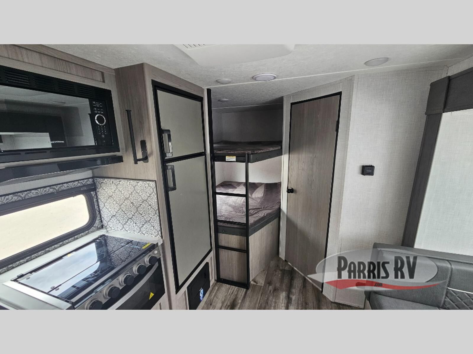 You can use this Coleman Light travel trailer for the many trips you have planned this summer! With a set of bunk beds, you'll have compact sleeping for those traveling with you, and you can use the Murphy bed after you reposition the sofa and pull it down. If cooking is one of your favorite things, you'll love using the three-burner range to prepare meals, and you can also use the microwave to prepare fast snacks or reheat leftovers. If you want to get cleaned up before you head out for another adventure, use the shower in the full bathroom to do so. There is a power bath fan to keep the steam from overwhelming you and a wooden medicine cabinet with mirror to help you get ready.
