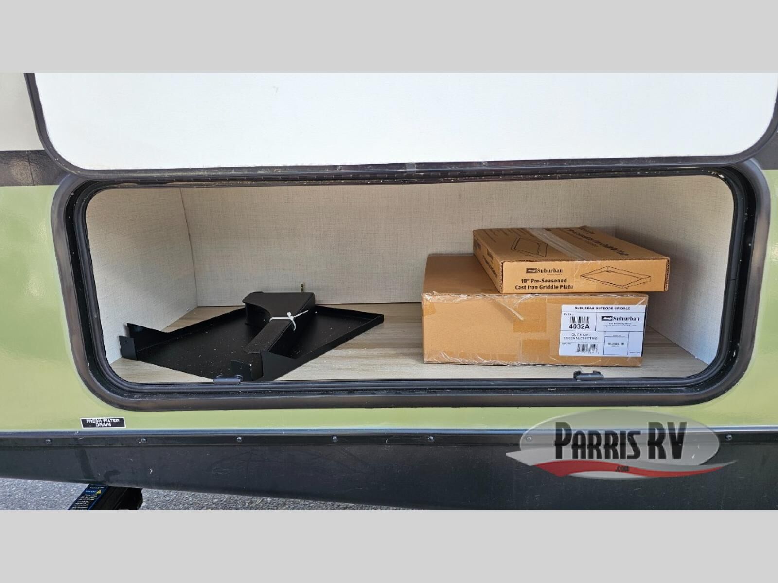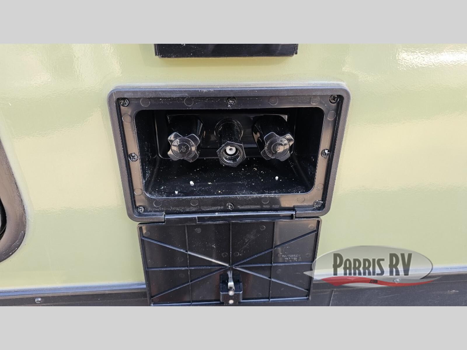 This travel trailer has everything you need for a fun camping trip at your favorite camping spots! The chef will have an easy time preparing meals in the full equipped front kitchen, and will enjoy the company sitting at the breakfast bar on one of the two bar stools. You can read the newspaper on the tri-fold sofa or replace it for the optional theater seating. The walk-through bathroom has everything you need to freshen up, and it leads directly in to the rear private bedroom which has a queen bed, a wardrobe, and a large window to let in some natural lighting. You also have an outside kitchen, a 19' awning, and an enclosed underbelly with forced heat. When the optional Beast Mode Package on this model is chosen, you'll enjoy a 400-watt solar package, a fresh water filter, a Maxxair roof vent cover, plus a Beast Mode independent suspension for better handling.