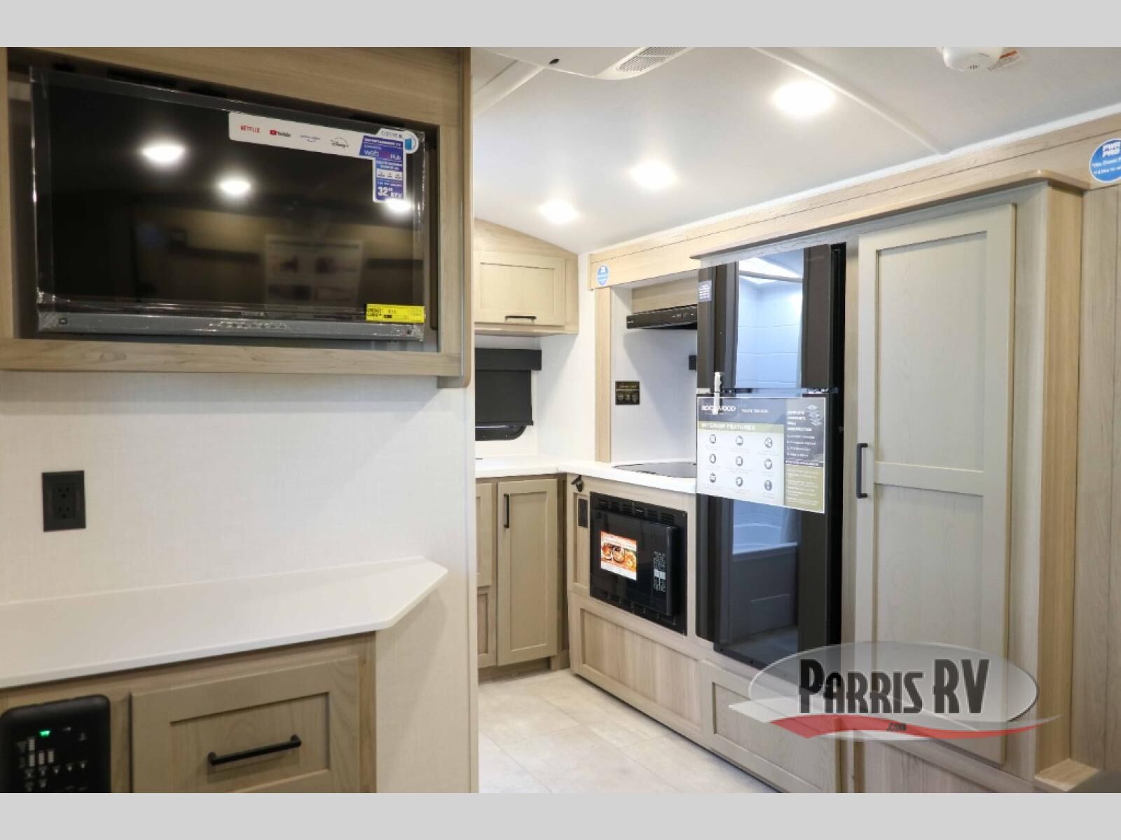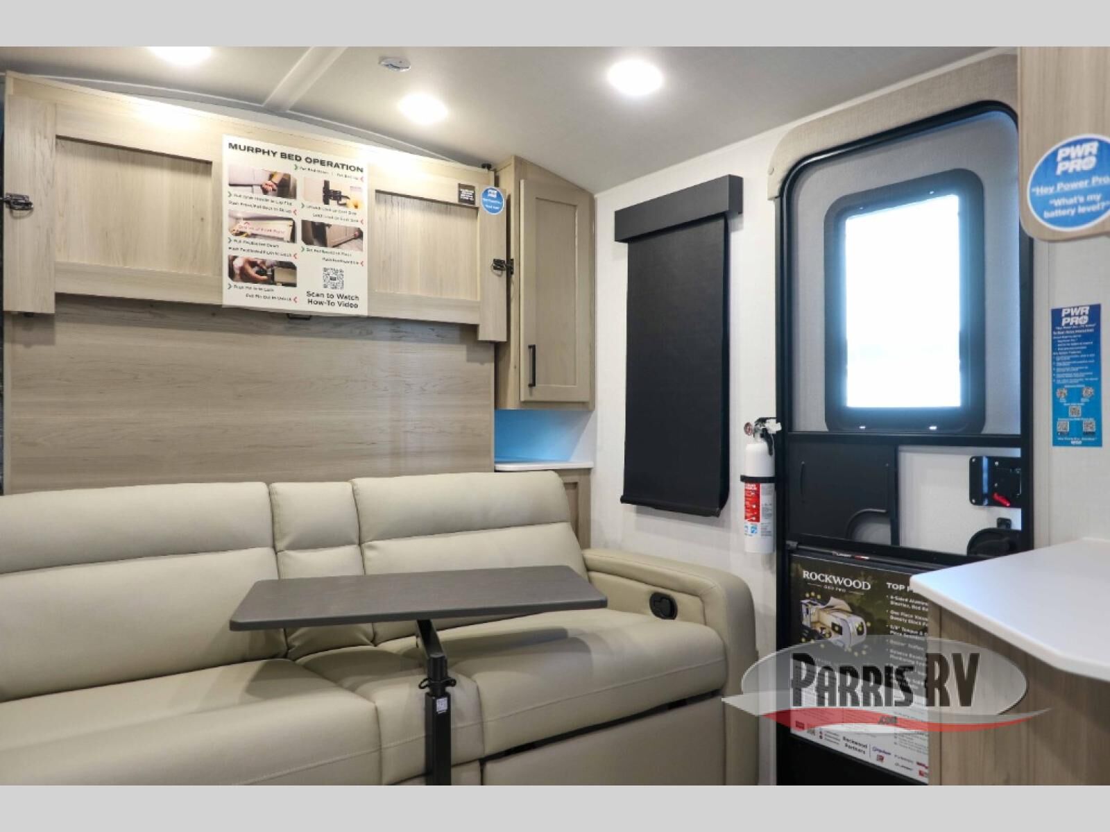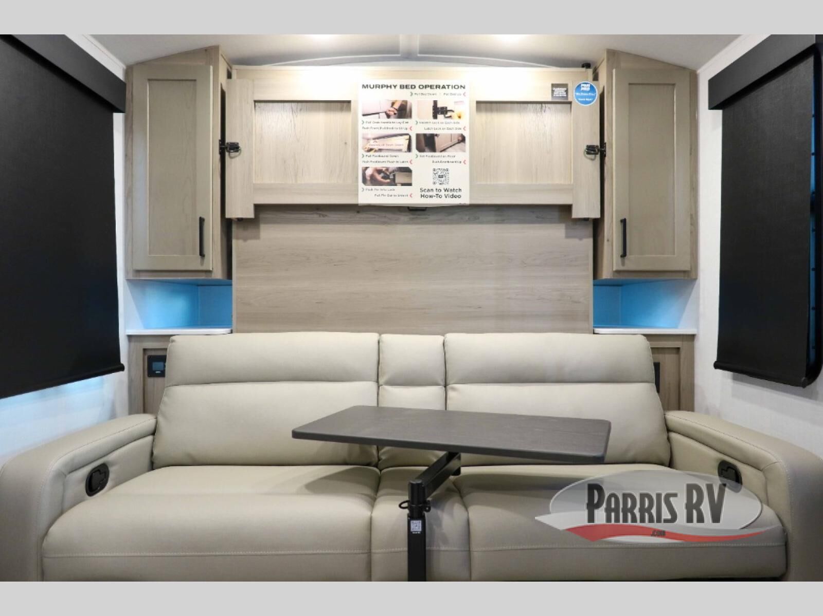 Pack your bags and head to your local state park in this travel trailer! You will love the extra space you have thanks to the kitchen slide out, and the jack knife sofa can fold away at night so you can sleep on the Murphy bed! This model includes a 32" 12V TV to keep you entertained on those rainy days, and the full bath will let you get cleaned up if you decide to hike despite the weather. There will be plenty of storage space for your belongings and gear since there is a pass-through storage and additional exterior storage, and don't overlook the exterior griddle for breakfast outdoors!